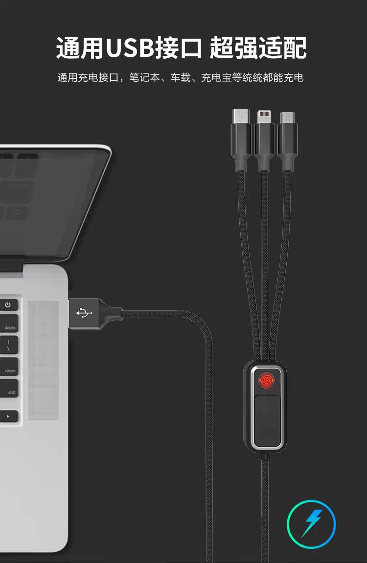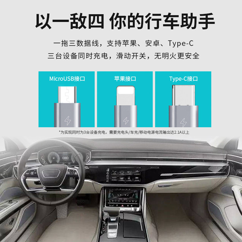 Кабель данных Один перетаскивание трехточковых сигарет более легкой версии невежественной пожарной интеллектуальной питания, портативная Apple Huawei Xiaomi
