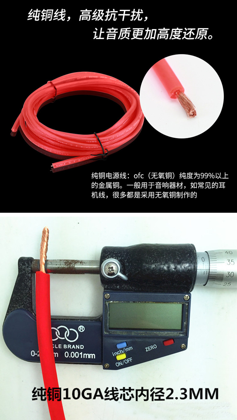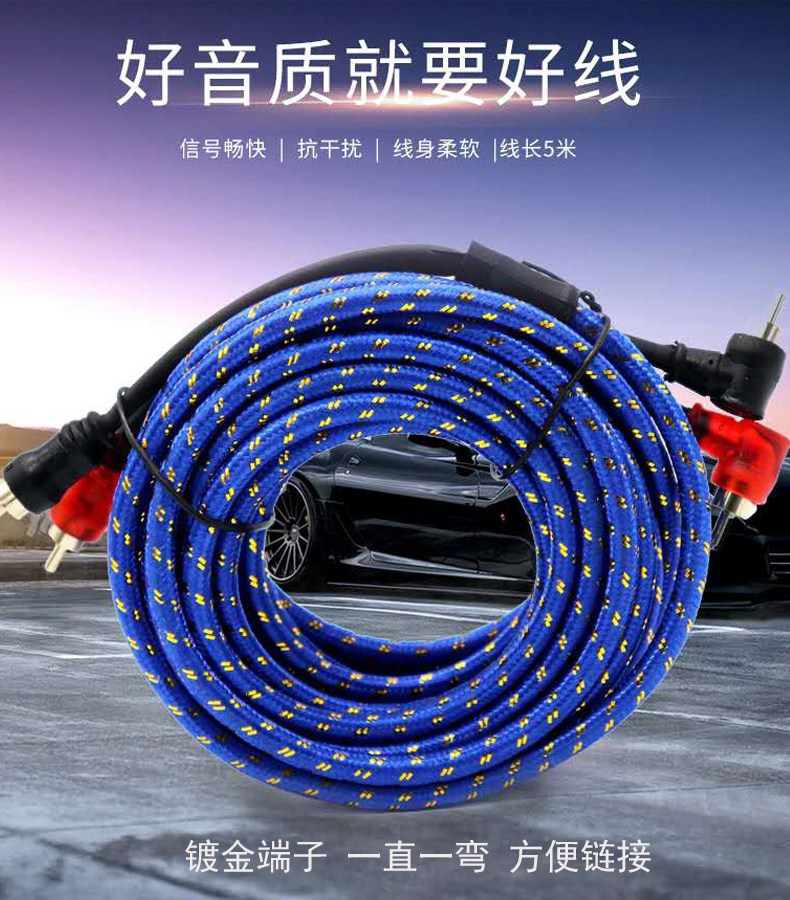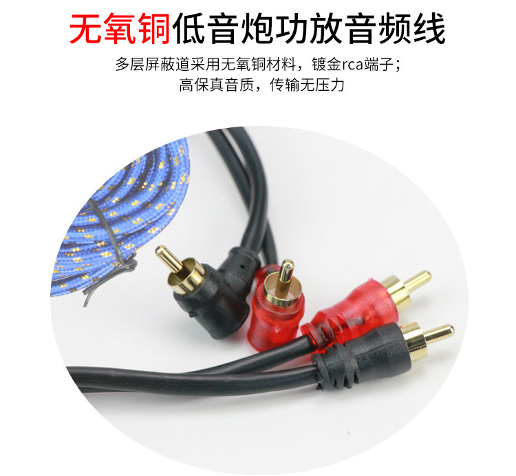 Чистая медная конверсионная линия Car Bass Skins, автомобильный аудио -специфический аудиокабельный автомобильный усилитель мощности видео RCA Power Cable