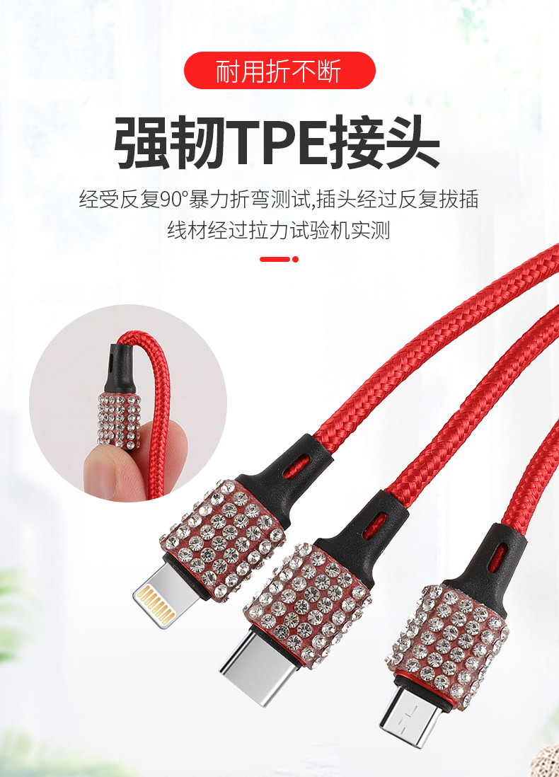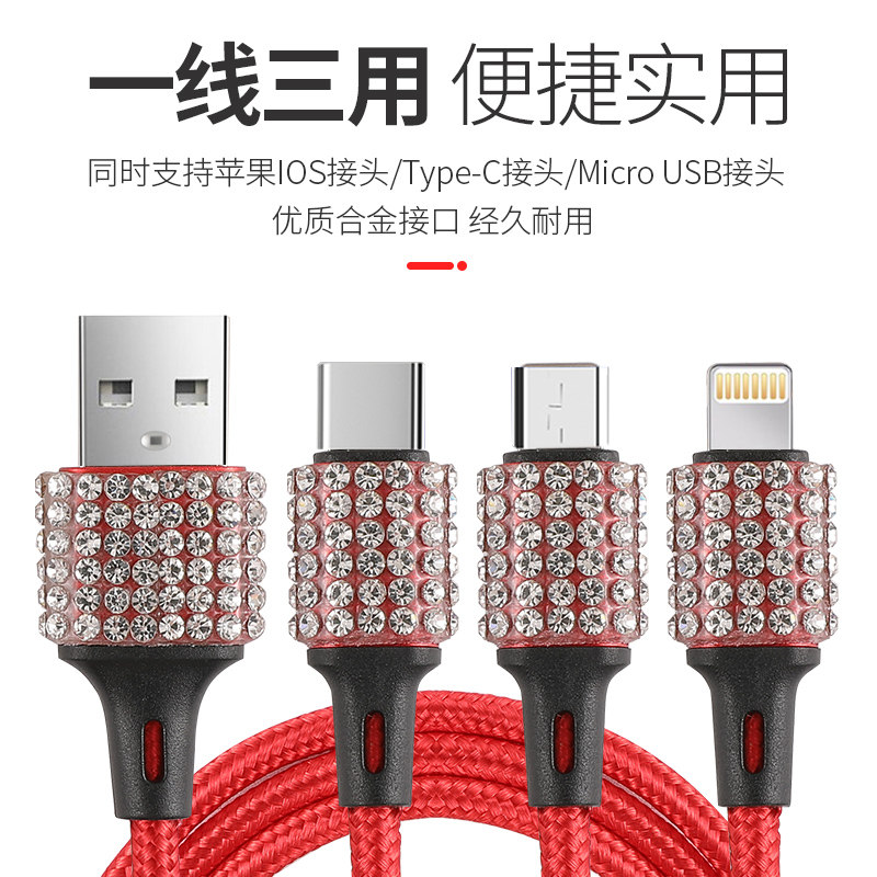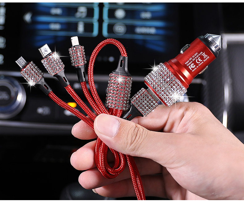 Зарядка транспортных средств Многоофункциональный USB Data Cable Creative Car Universal кирпичная зарядка проволоки перетаскивание трех зарядных проводов