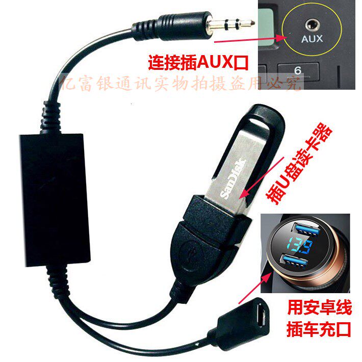 Этот AUX поворачивает линию U -диска, запатентованный продукт поставляется с функцией декодера, универсальной модели интерфейса AUX и дома с круглыми отверстиями AUX с басовой пушкой для использования.Неэтруктивный музыкальный декодер непосредственно вставлен, поддерживает переключение песен на декодере Aux и не поддерживает переключение песен на руле.