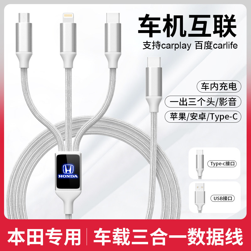 Honda's Honda's Honged Car Data Cablay Carplay Three-в одном Apple Huawei Adapter USB Super Fast зарядка USB