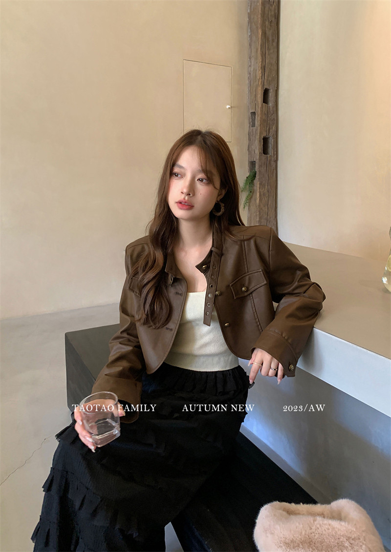 Цветная короткая осенняя ретро коричневая куртка, в американском стиле, подходит для подростков