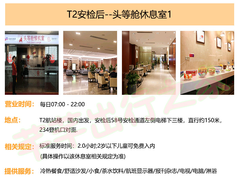 | Тип пакета: | Посадка JetEasy (включая экспресс-регистрацию перед проверкой безопасности), Зал ожидания первого класса (специальное предложение, ограниченное по времени после проверки безопасности), Бизнес-зал (после проверки безопасности), Зал ожидания China Southern Airlines (только China Southern Airlines) |