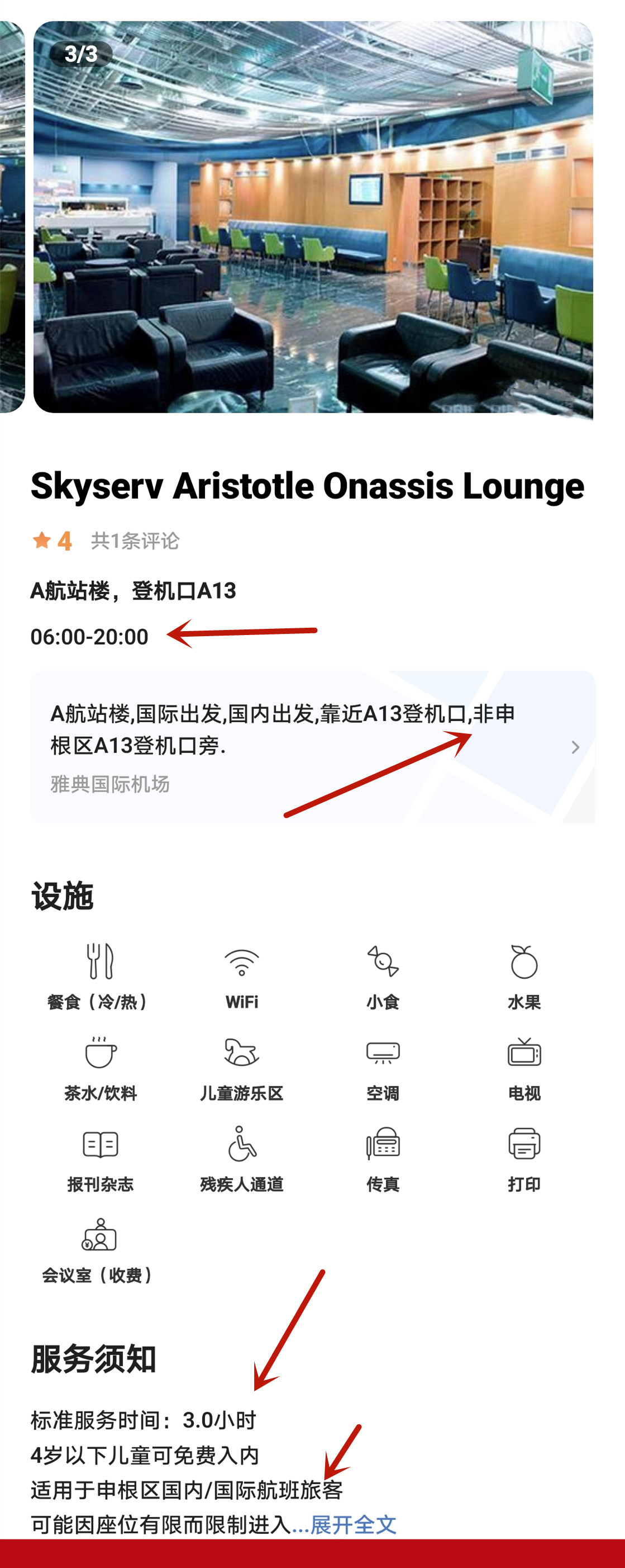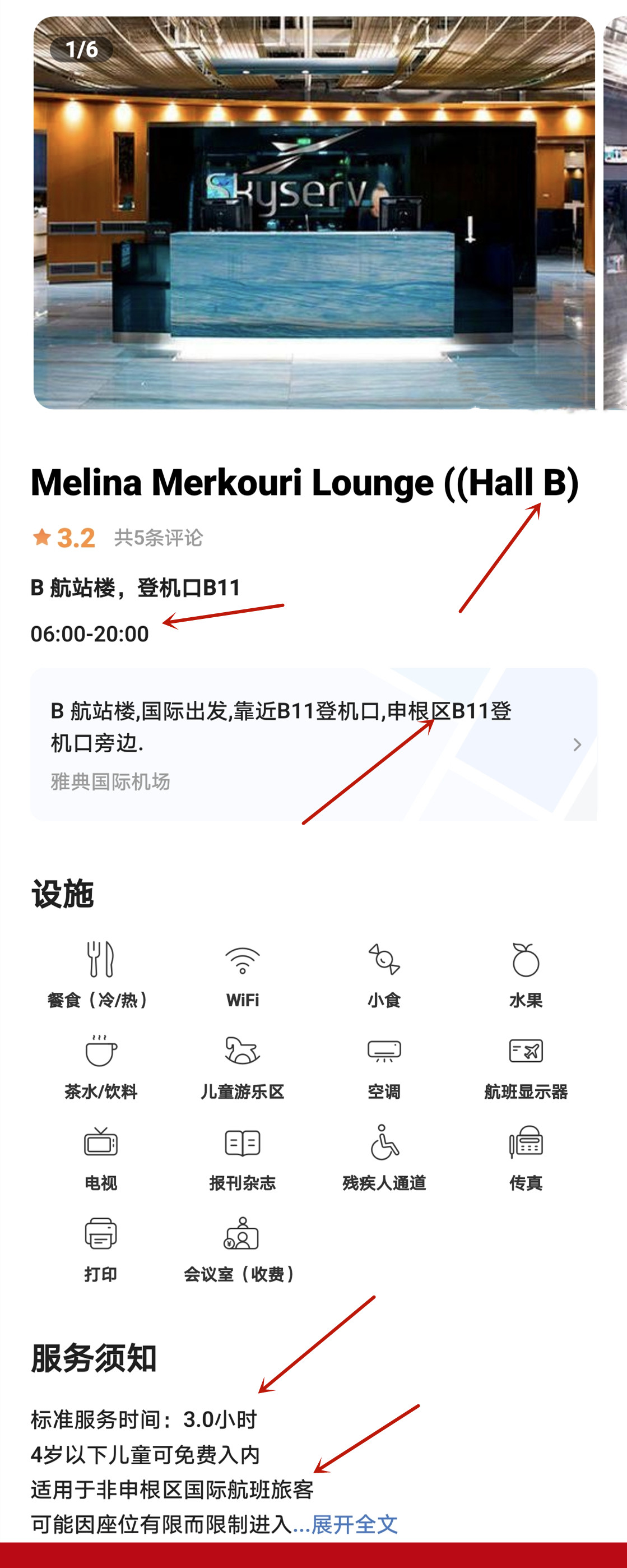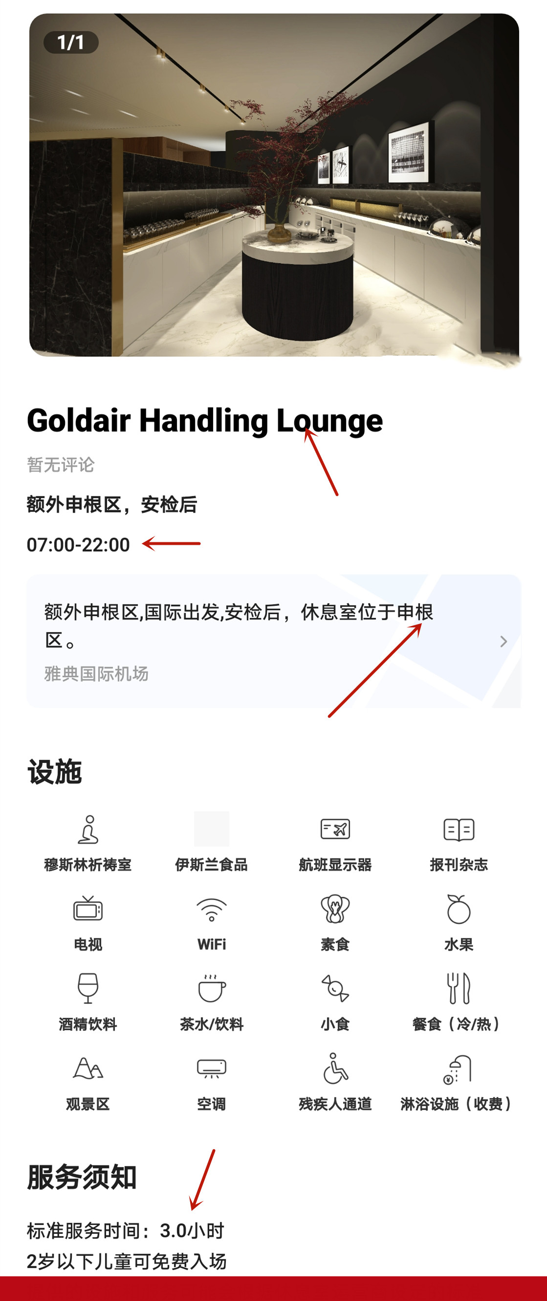 | Тип пакета: | Шенгенская зона/Международный вылет/Обслуживание Goldair/3 часа каждый раз/Бесплатное питание, Терминал А/Шенгенская зона/Skyserv Aristotle/3 часа каждый раз/Бесплатное питание, Терминал B/внутренние рейсы/Goldair CIP/2 часа каждый раз/бесплатное питание, Терминал B/Международные рейсы/Мелина Меркури/3 часа каждый раз/Бесплатное питание, Терминал А/Нешенгенская зона/Swissport Executive/3 часа каждый раз/Бесплатное питание |