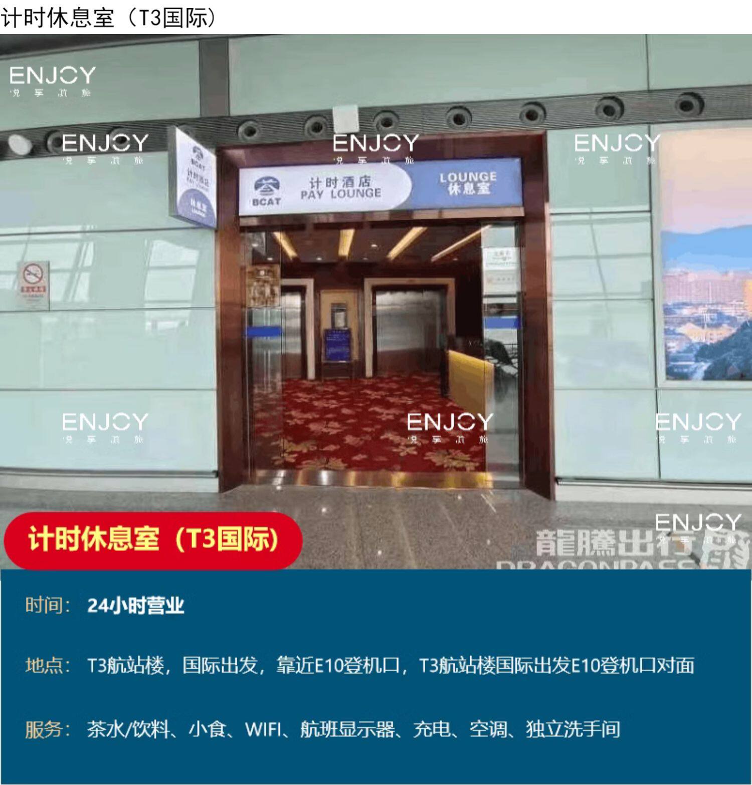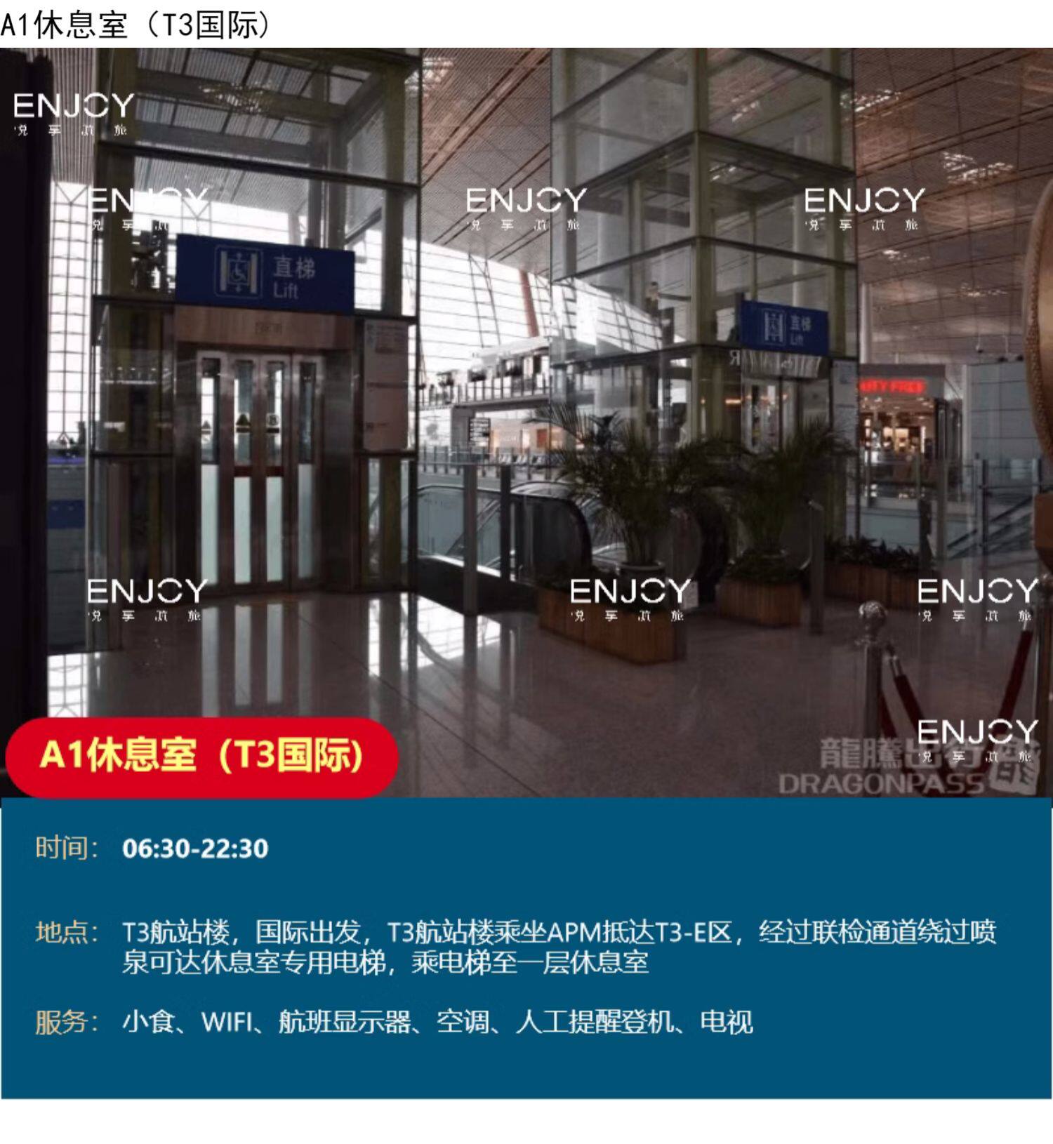 | Тип пакета: | T3 Onemic A1 Lounge (C08-18 после проверки безопасности), T3 Homensic Security Check+Зал за место в зале безопасности., T3 Onemic A2 Lounge (посадочный порт C34 C35), T3 International Time Lounge E10 Посадка 24 -часового бизнеса, T2 Onemic V1 Lounge (напротив 3 -го этажа напротив порта проверки безопасности), T3 International A1 Lounge, T2 Oneric China China Eastern Airlines Lounge V2, T2 Homensic Security Проверка безопасности+проверка безопасности зал., T2 International V1 Lounge (рядом с Air Checkpoint после проверки безопасности), Быстрый проход безопасности |