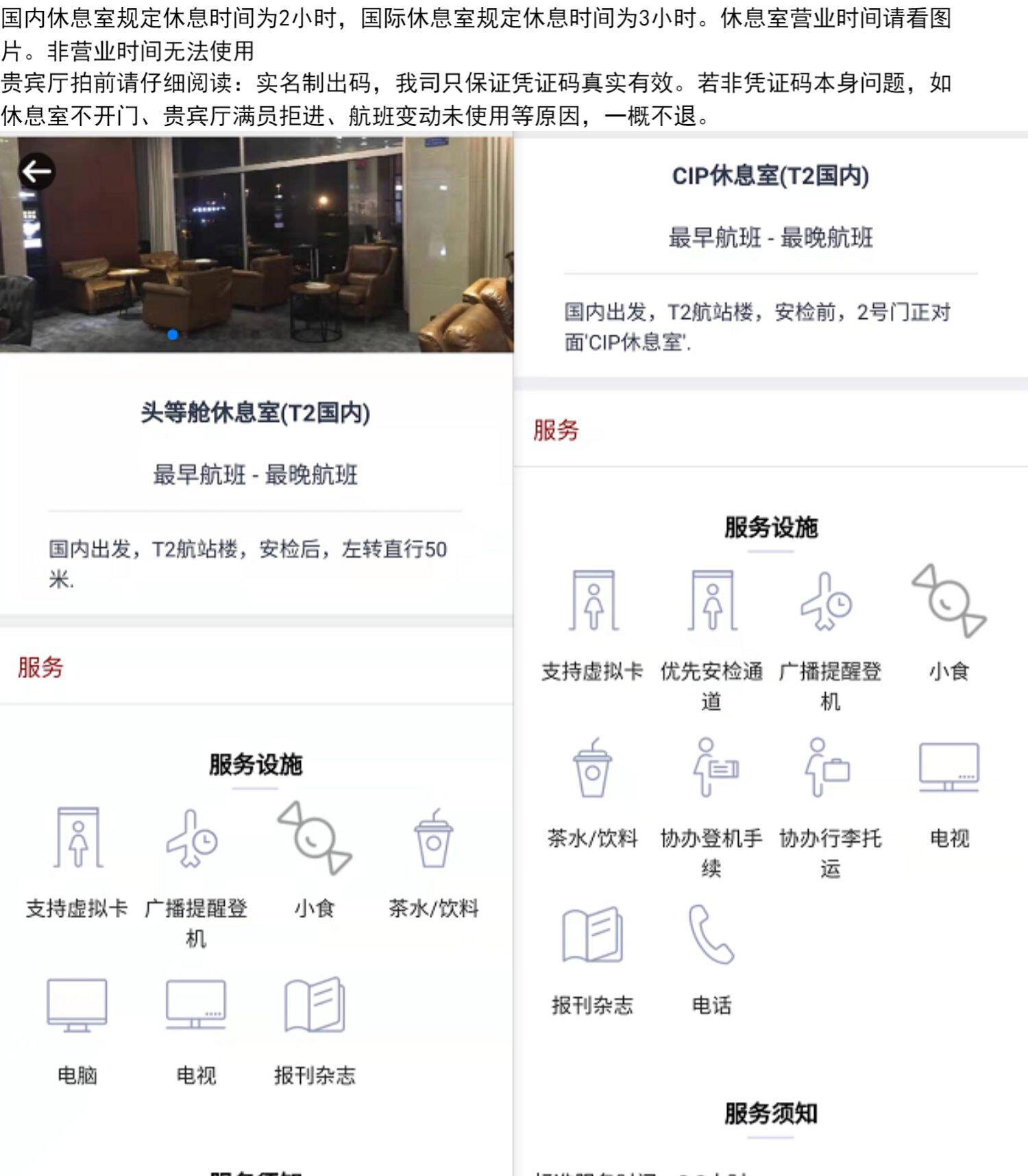 | Тип пакета: | VIP -комната Aviation Aviation T2 T2 (Unlimited Airline Company), Lounge Class-Class T2 (50 метров осталось после безопасности после безопасности), VIP -комната T2 Oneveric China Eastern Airlines (только для использования East Airlines), T2-Cip Lounge (внешняя проверка безопасности, с бесплатными каналами проверки быстрого безопасности) |