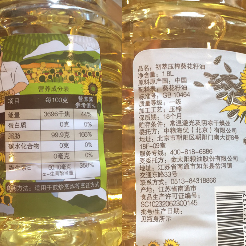 COFCO CHUOLIU Подсолнечное масло 1.8L Нажатие съедобного масляного предприятия.