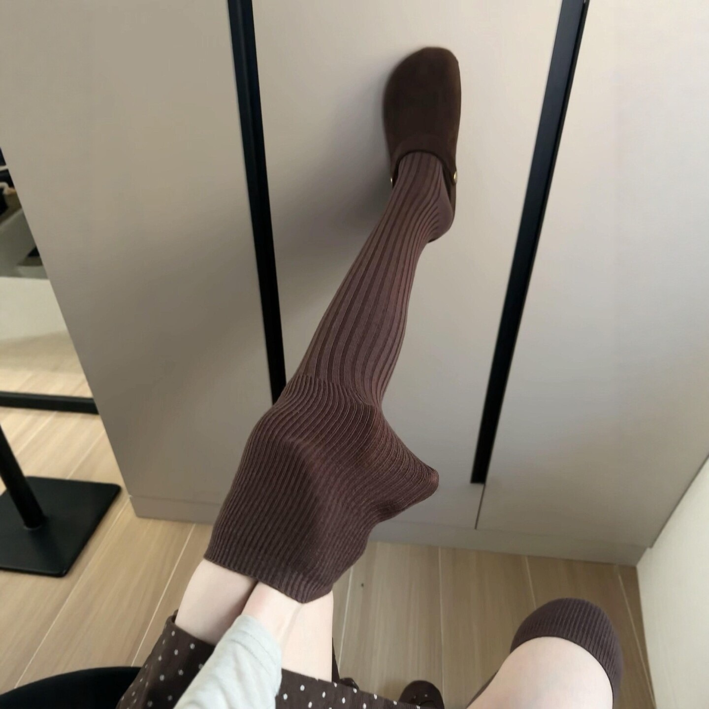 Ах!Очень тепло ~ плюс бархат внутри!Шерстяные модели будут выделять тепло~. Микрокомпрессионные гольфы Maillard для осени и зимы.