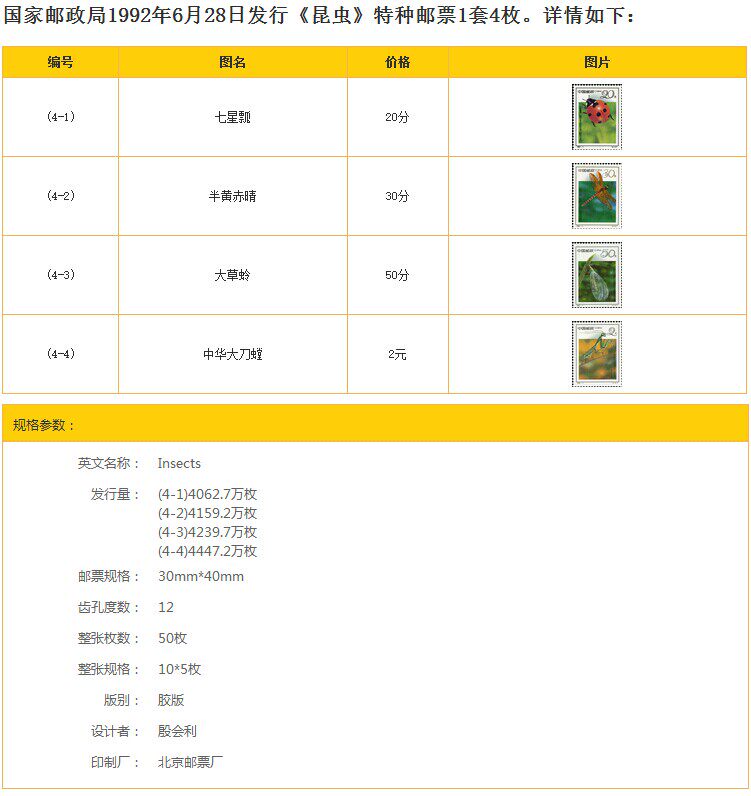 В настоящее время в мире насчитывается более 1 миллиона видов насекомых, и они тесно связаны с жизнью человека.Среди них вредные насекомые поедают урожай и заражают болезни, разрушают естественную экологическую среду, уничтожают мебель, продукты питания и одежду, вызывают гниение зданий и древесины, а также влияют и мешают нормальной жизни человека.Полезные насекомые стали естественными врагами вредителей, молча, но безжалостно поедая своих взрослых особей или яйца, помогая людям уничтожать вредителей, уменьшая и устраняя ущерб и становясь друзьями людей.Поэтому изучение энтомологии играет важную роль в народном хозяйстве и жизнедеятельности народа.По случаю 19-го Международного конгресса энтомологов, проходящего в Пекине, Министерство почт и телекоммуникаций моей страны выпустило серию марок с изображением божьих коровок, стрекоз, златоглазок и богомолов, которые являются известными хищными насекомыми в моей стране.