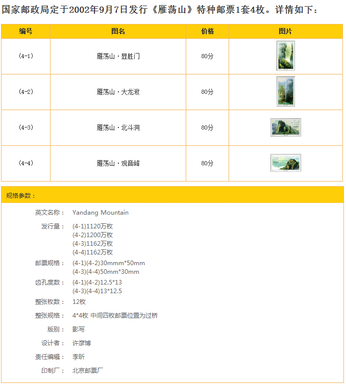 2002-19 Венчжоу Янданг Маунтин Плотник живописные живописные пейзажи пейзаж Пейровой штамп Парус 0,8 Юань