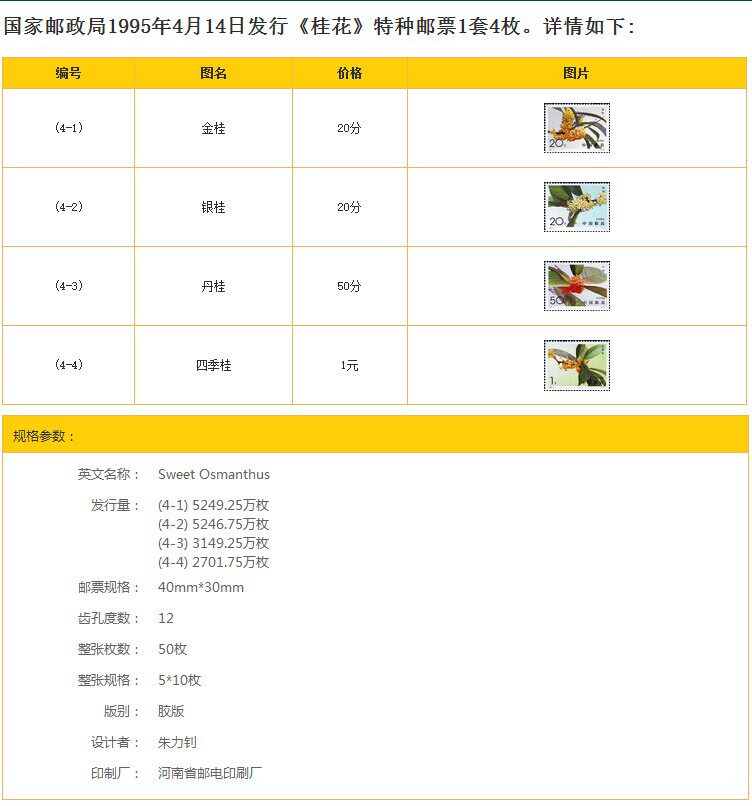 [Агентство Bole Post News] 1995-6 Osmanthus Stamps New China Mamp