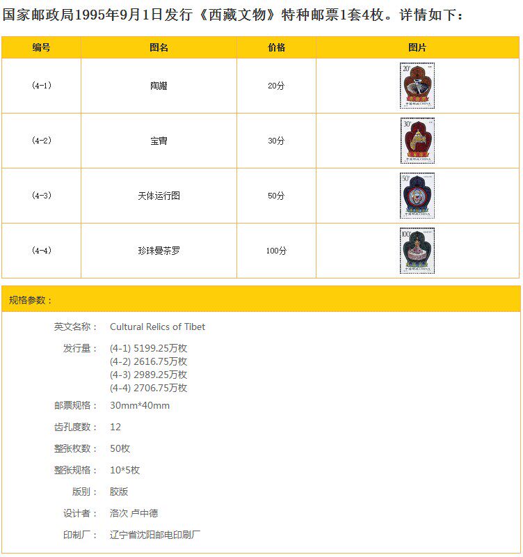 [Агентство Boleye News] 1995-16 Tibet Cultural Relics Stamps New China Mamps