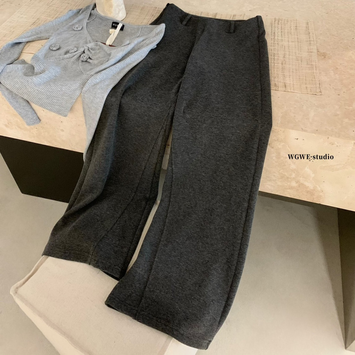 Демисезонные бархатные штаны, высокая талия, оверсайз