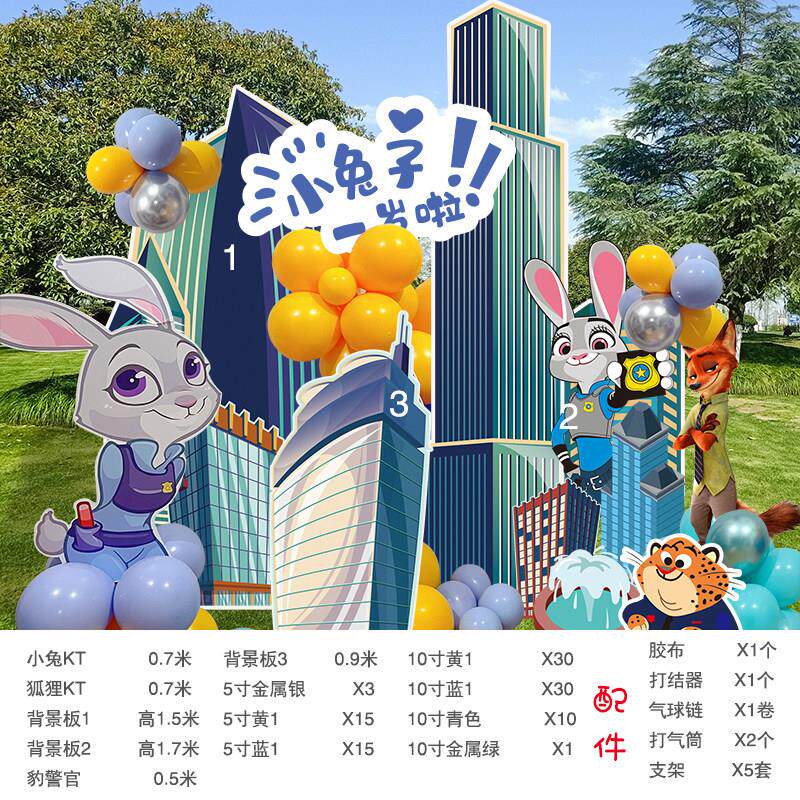Тематическая композиция «Зверополис» на день рождения, детский банкет на сто дней, украшение с изображением кролика, воздушный шар для вечеринки, доска KT