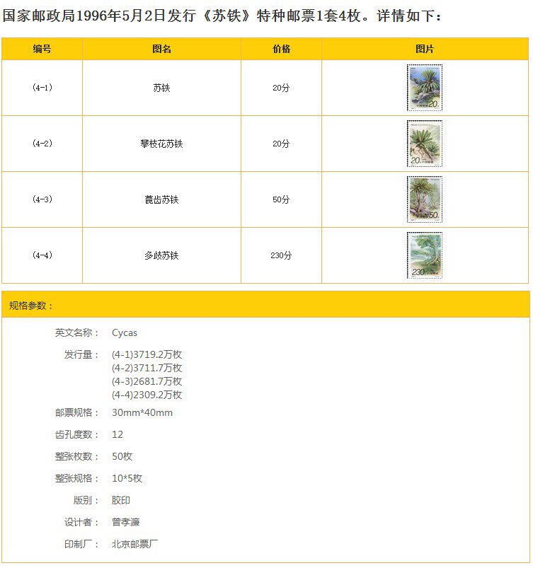 &Nbsp; su tie, также известная как&Ldquo; Железное дерево&Rdquo;SU Tie Plations - самые старые семена на земле.Он распределяется с Индонезии в мою страну и южную Японию.Хотя в мире в мире не так много видов завода SU Tie, вместе с их окаменелостями, они имеют высокую ценность.Четвертая Международная конференция Советского Союза состоялась в городе Панжихуа, провинция Сычуань, провинция Сычуань с 1 по 5 по 5 мая 1996 года. В Азии существуют самые большие и наибольшие распределенные ресурсы Wilderlin и богатые советские железнодорожные железы.Чтобы поздравить созыв о конференции, Департамент постов и телекоммуникаций выпустил эту специальную марку.