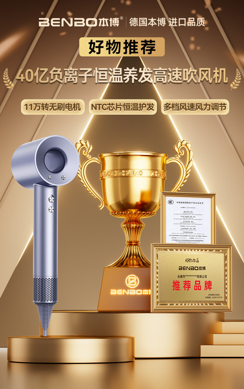 Немецкий фен Benbo, уход за волосами с отрицательными ионами, бесшумный, быстросохнущий, бытовой, 2026, новый фен, студенческий фен