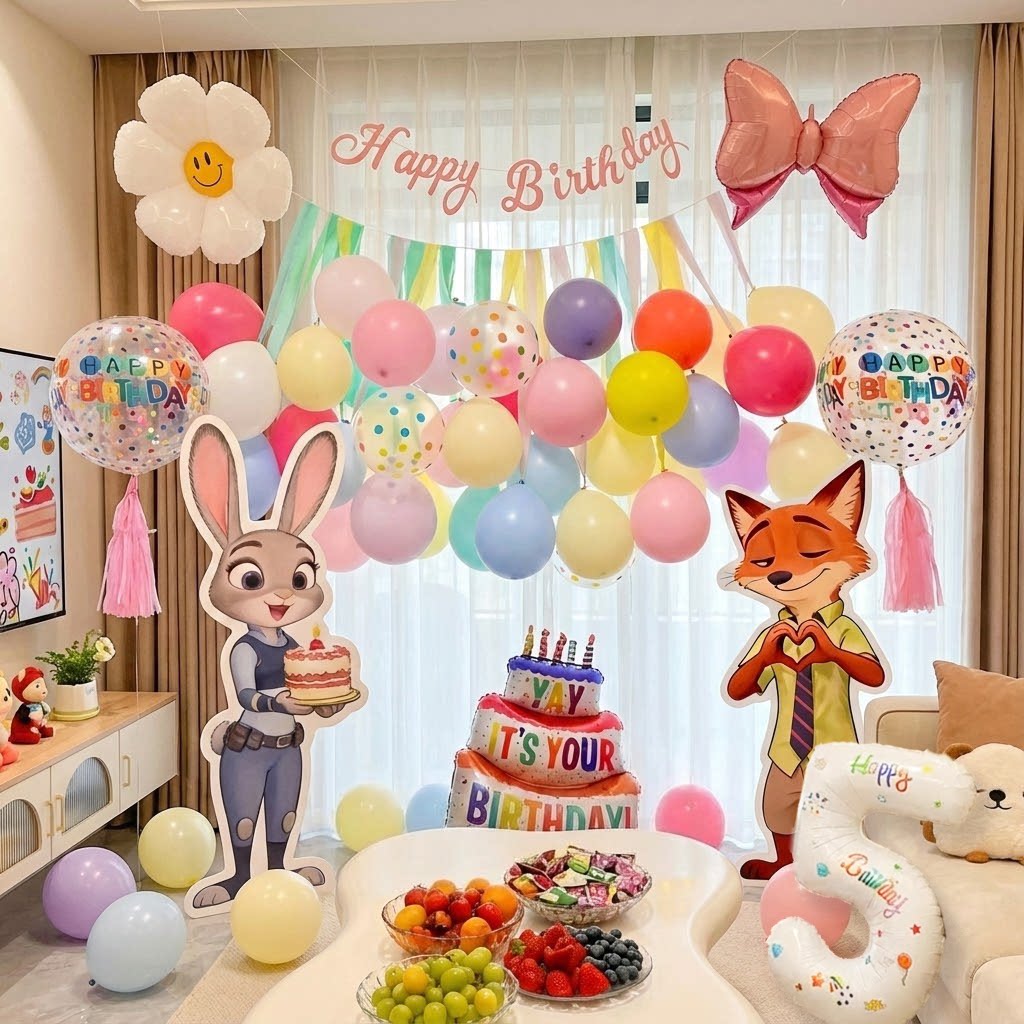 Тема Зверополиса, украшение сцены дня рождения, воздушный шар, подставка для доски, ритуальная вечеринка для 5-летней девочки 3