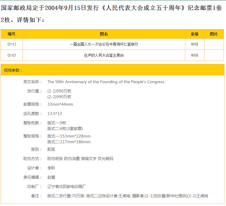 Народный конгресс (далее называемый народным конгрессом и народным конгрессом) является государственным органом власти Китайской Народной Республики.Под руководством Коммунистической партии Китая ее постоянный орган является постоянным комитетом Национального народного конгресса.Система Народного Конгресса - это фундаментальная политическая система Китая, организационная форма режима демократической диктатуры китайского народного народного, политической системы Китая и важная часть социалистической надстройки.Система Народного Конгресса - это форма правительственной организации, в которой все полномочия государства принадлежат народу и демократическому централизму, и в соответствии с юридическими процедурами избиратели будут выставлять представителей народного конгресса на всех уровнях на основе демократических выборов, а местные и национальные конгрессы на всех уровнях используют власть штата.В ознаменование 50 -летия основания народного конгресса, государственное почтовое бюро выпустило 2 марки в этом наборе.