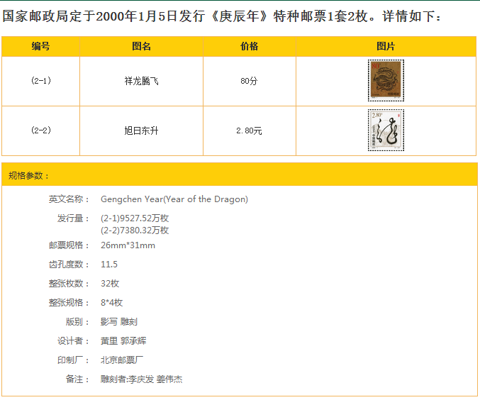 2000 год нашей эры — год Гэнчен в китайском зодиакальном календаре, который также является годом дракона в зодиаке.Легенда о драконе зародилась в древнем клановом обществе и является самым благоприятным существом в благоприятной культуре китайской нации.На протяжении тысячелетий художественные образы драконов были богатыми и красочными.Первый элемент марки основан на изображении дракона, вырезанного на плитке времен династии Хань. Фоновое изображение представляет собой традиционный орнамент.——Haihaijiangya;Вторая картинка написана курсивом&Ldquo; дракон”Иероглифы написаны одним штрихом, как плавающий дракон, и были написаны У Ляном, известным каллиграфом династии Мин.