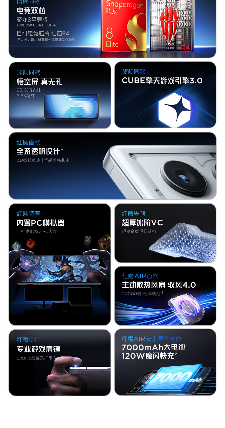 [Новый продукт версии Aurora Silver в продаже] Nubia Red Magic 11Air, Snapdragon 8 Extreme Edition, прозрачный дизайн всех серий, активный вентилятор охлаждения, игровые наплечные клавиши, мобильный телефон для киберспорта 5G