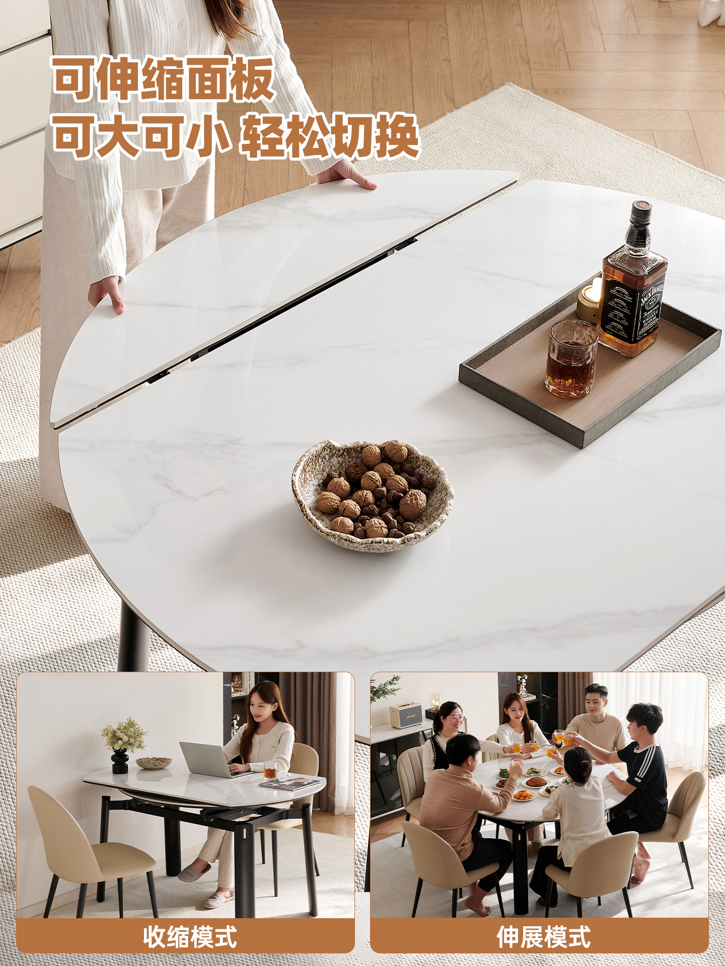 帕沙曼 Обеденный стол из сланца, регулируемый круглый стол, складной телескопический небольшой обеденный стол и стулья, улучшенный домашний обеденный стол с полной опорой.