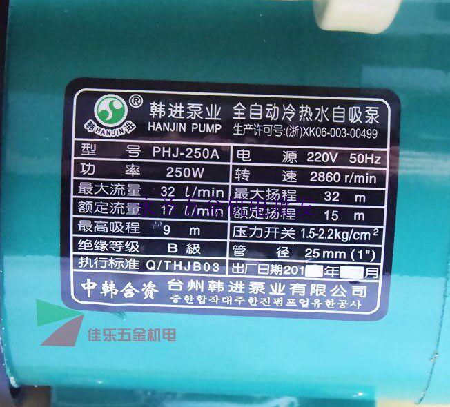 Хан Джин PHJ-2550A Полностью автоматический горячий и холодная вода самостоятельная насос Домохозяйственная водопроводная водопроводная труба Насос Насос Насос давление солнечное давление