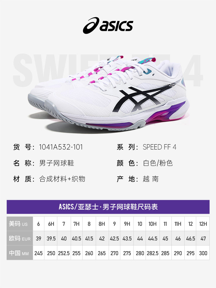 Теннисные кроссовки Asics для мужчин 26 лет AO для игроков Открытого чемпионата Австралии по теннису в одном стиле с амортизацией SOLUTION SPEED FF 4