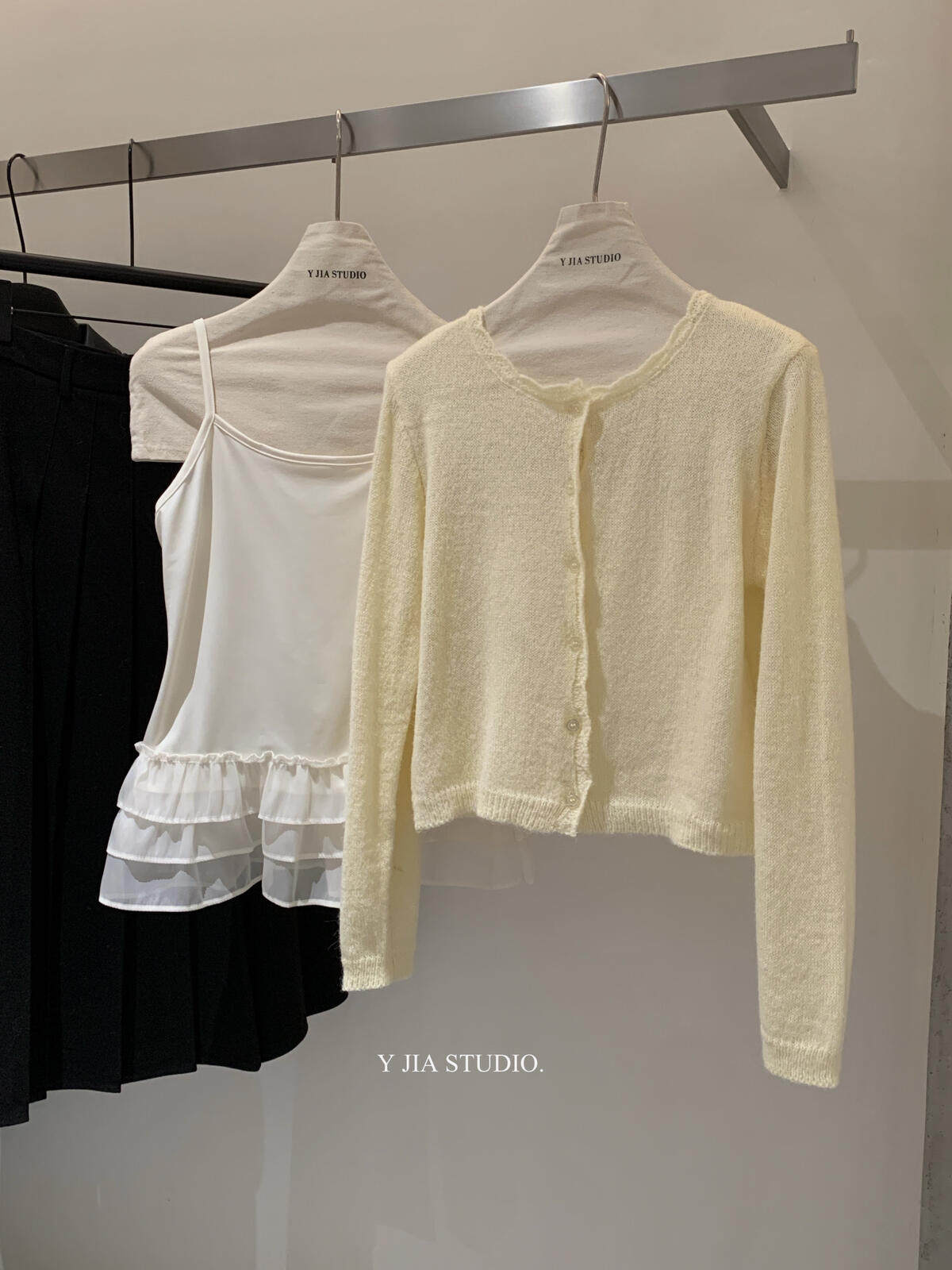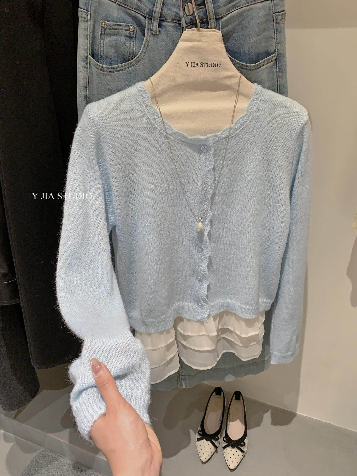 Y.JIA Yijia-нежный и милый стильный кружевной свитер-кардиган с подтяжками, костюм Y26-1586