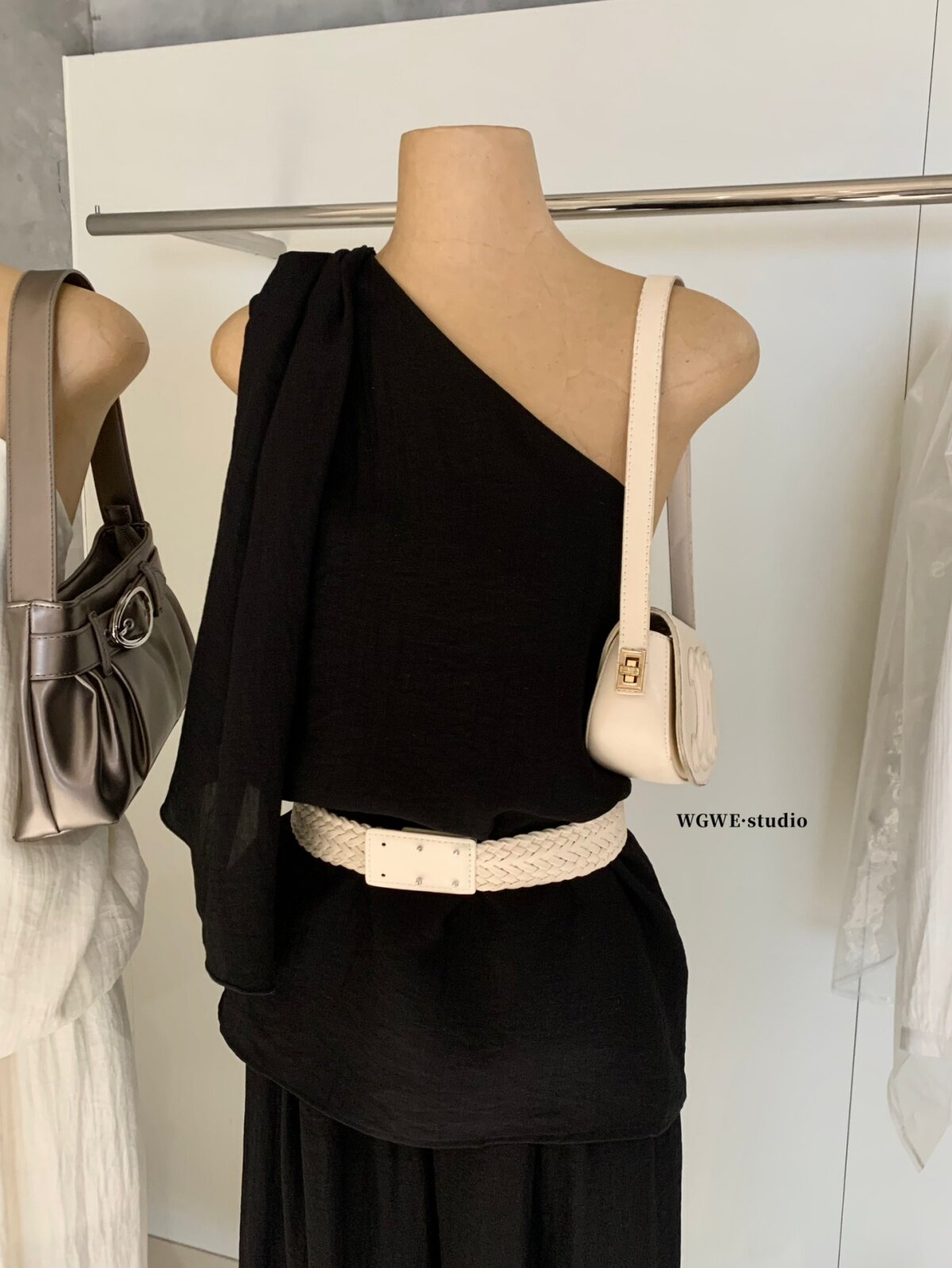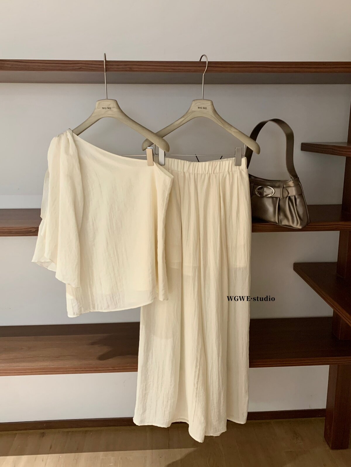 Асимметричные штаны, комплект, простой и элегантный дизайн, изысканный стиль, яркий броский стиль