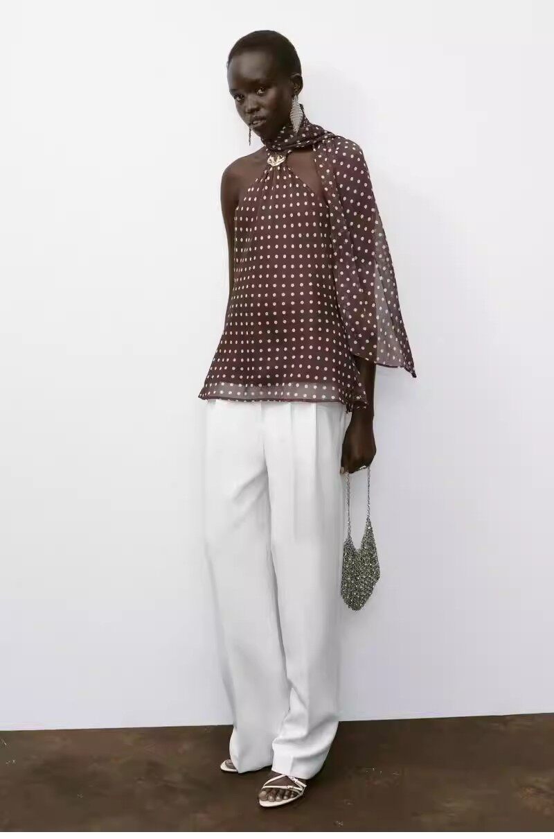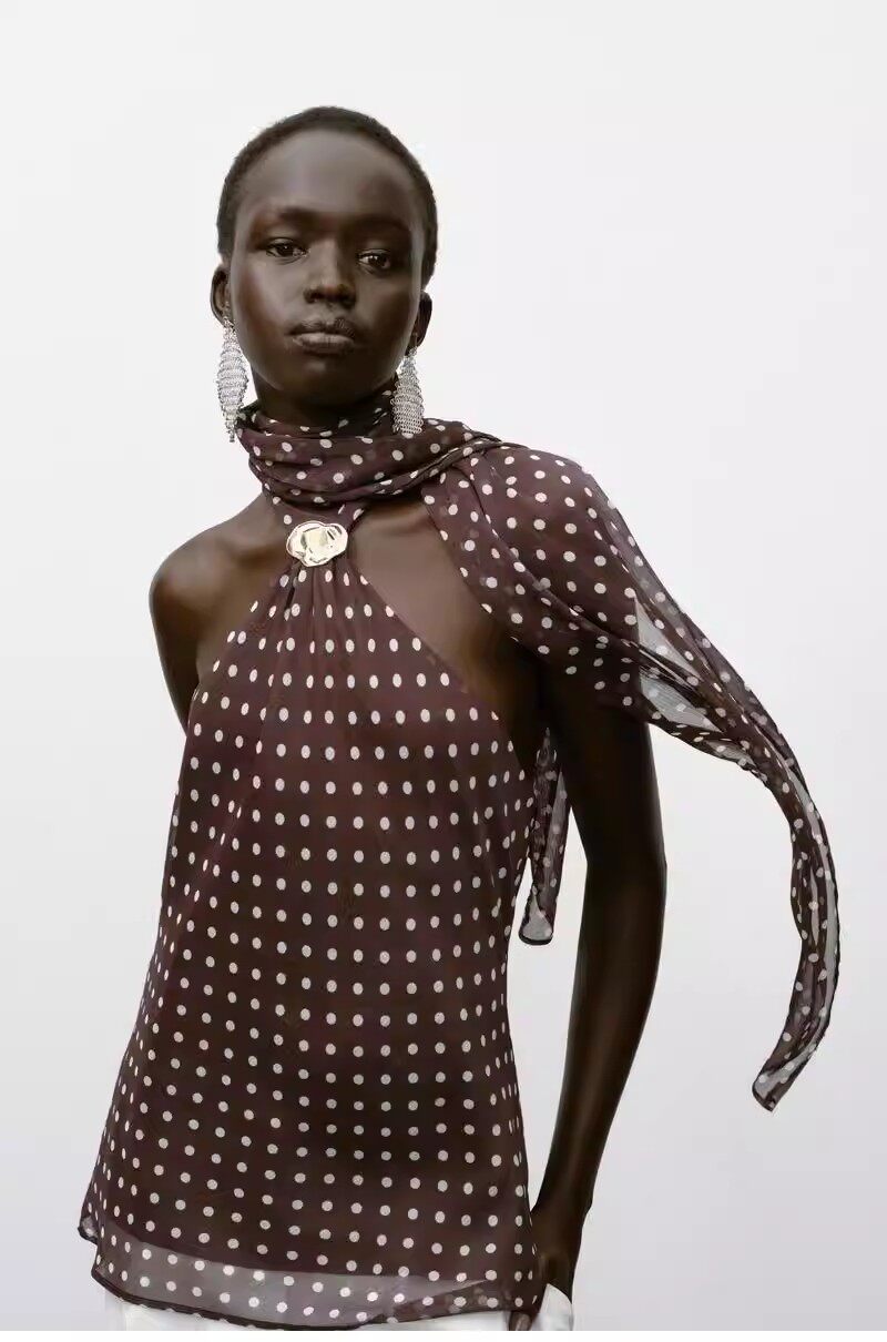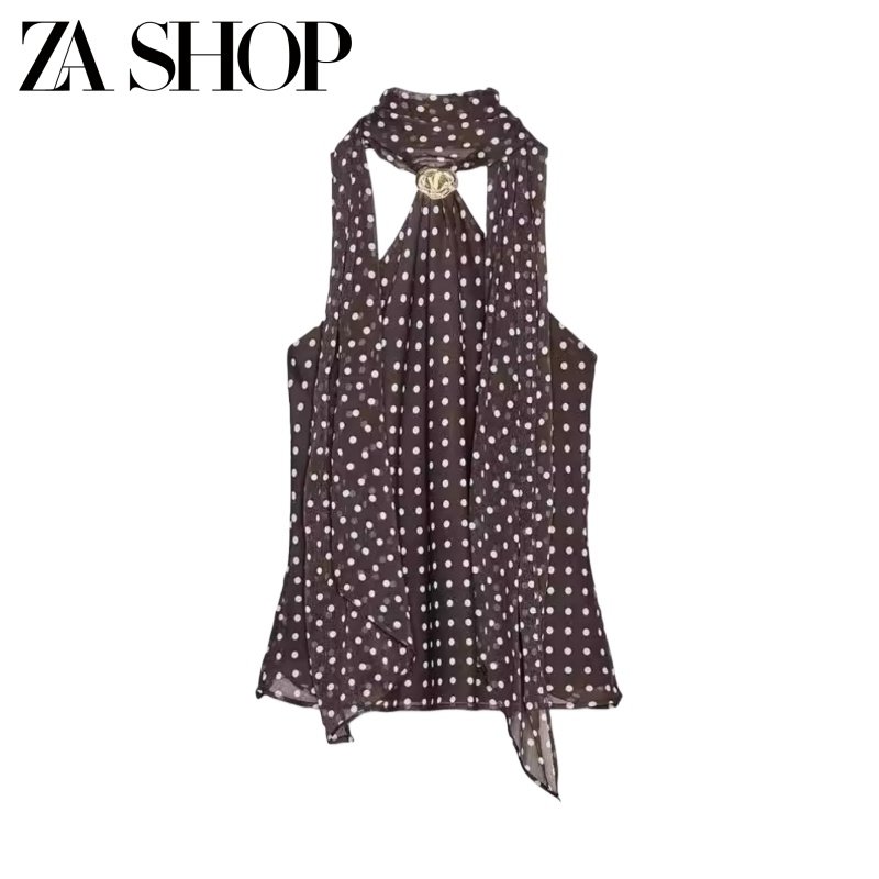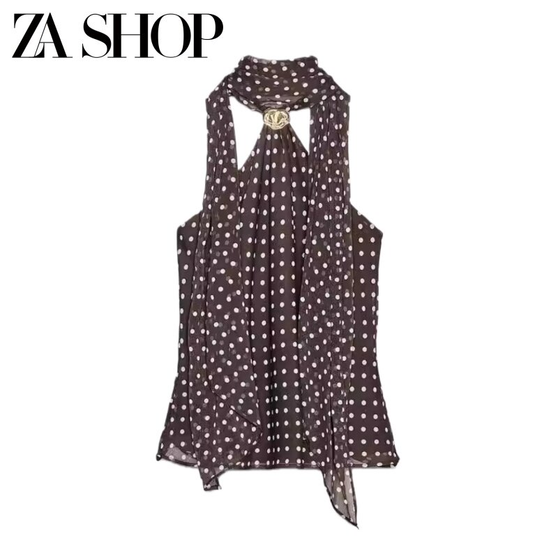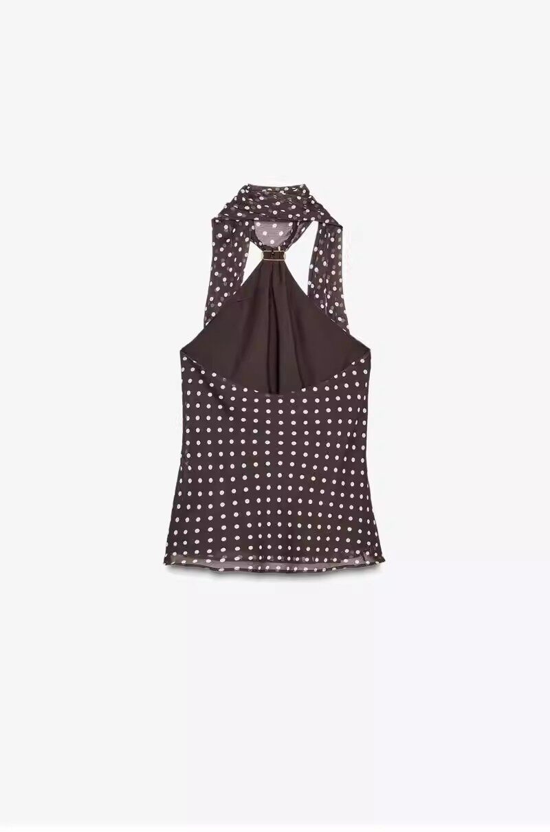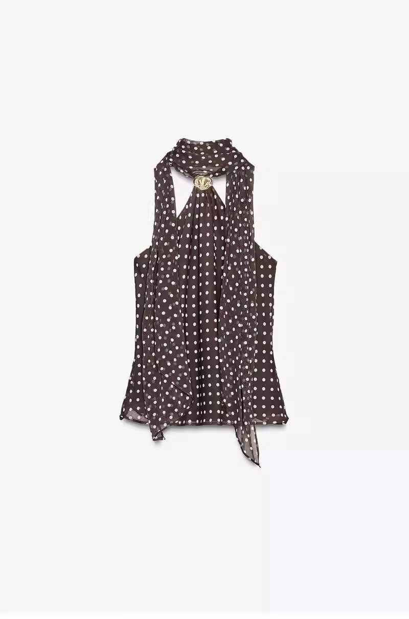 2026 весенний новый женский сексуальный шарф с металлическим кольцом, декорированный в горошек, топ с открытой спиной и бретелькой на шее 1165174