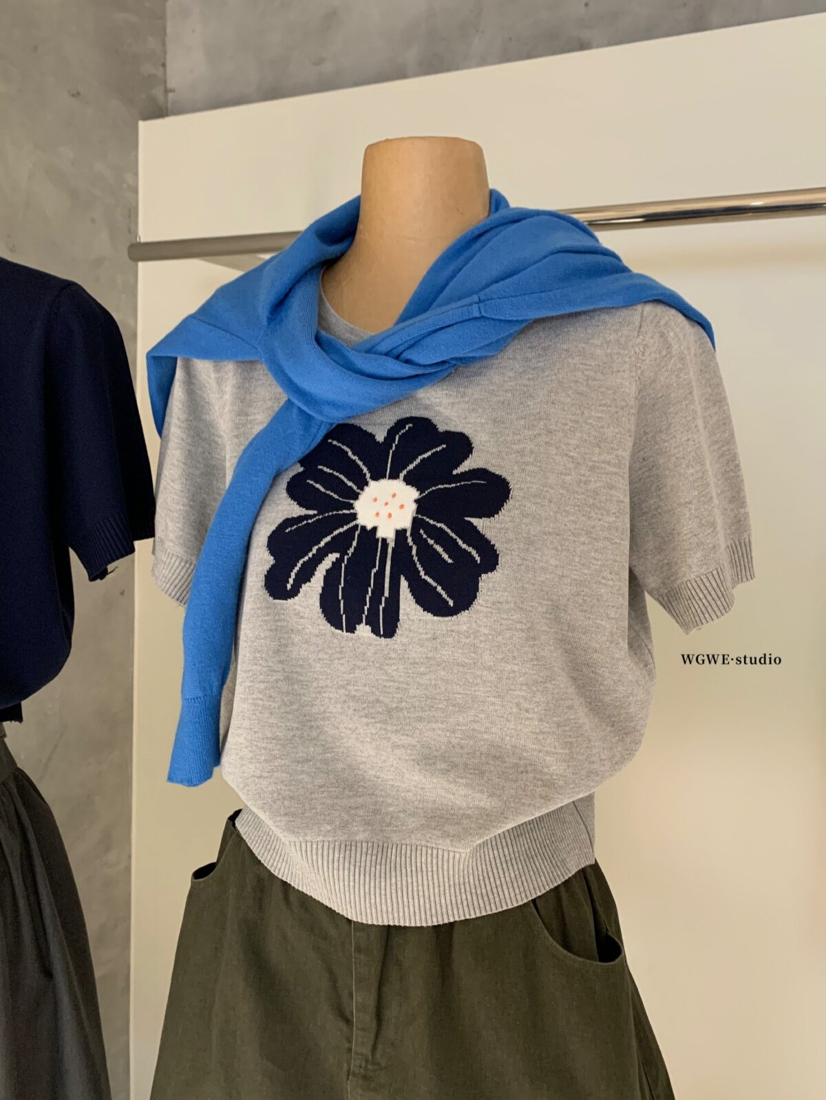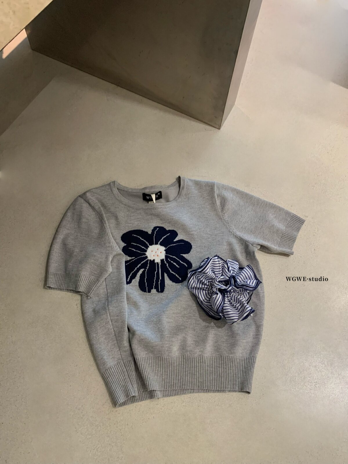 Летний трехмерный трикотажный свитер с круглым воротником, в корейском стиле, в цветочек