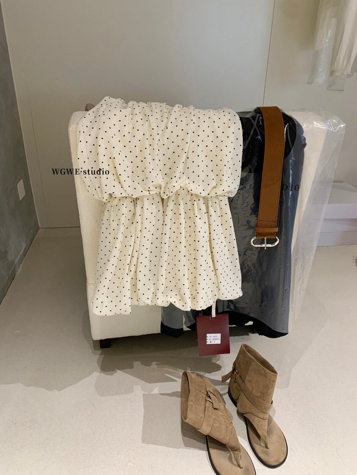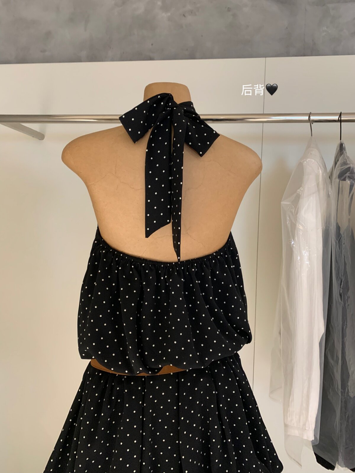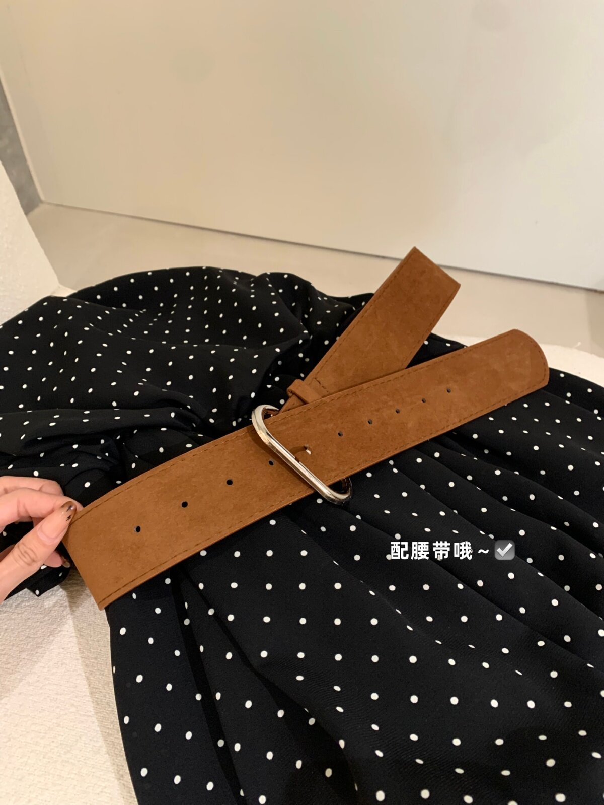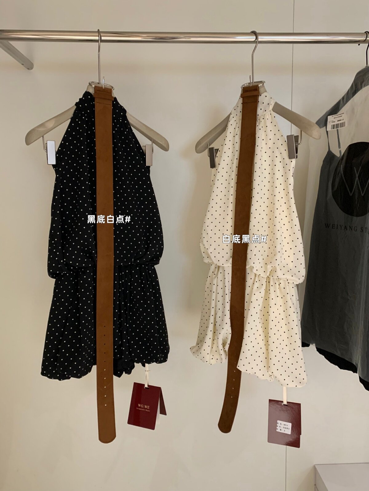 WGWE2026 весенне-летнее французское платье в горошек с подвесным воротником для женщин с возрастным темпераментом, короткая юбка А-силуэта с модным поясом