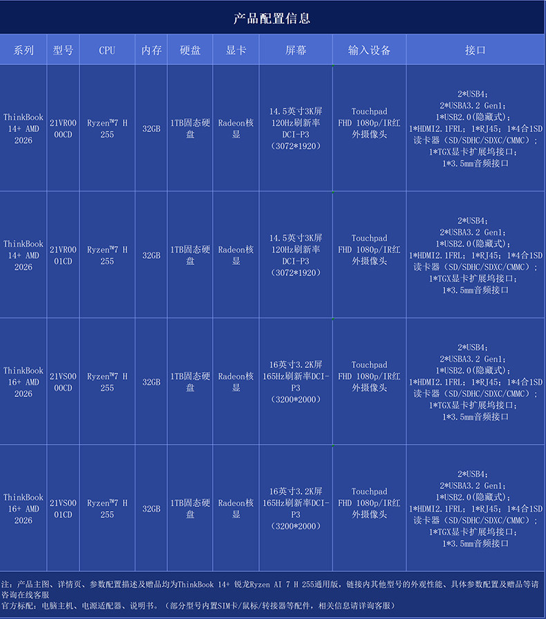 [Новый продукт + национальная субсидия 15%] Lenovo ThinkBook14+16+ 2026 Универсальный ноутбук Ryzen R7/AI 7 32G 1T Тонкий и легкий студенческий офисный ноутбук для бизнеса Официальный официальный сайт