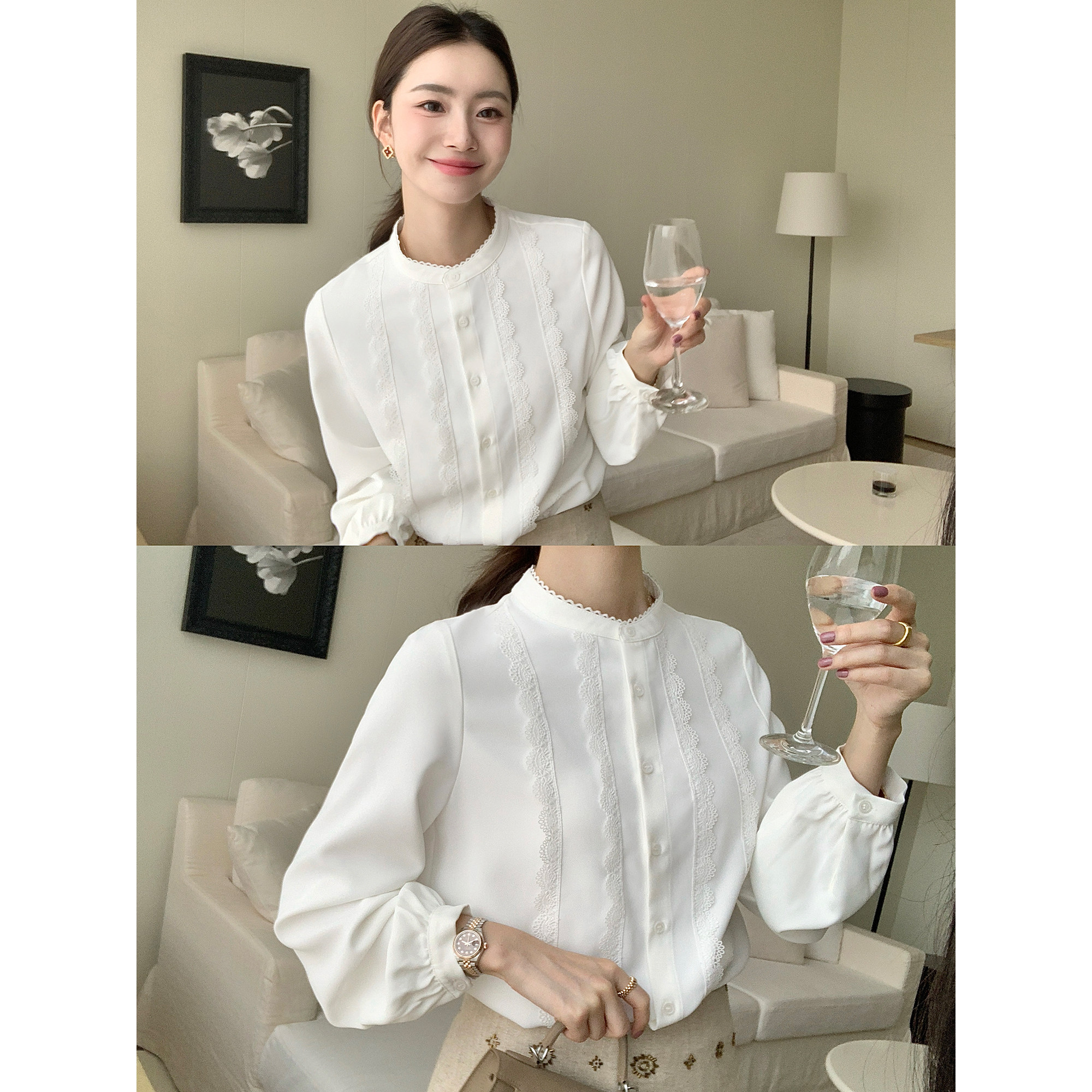 pusumede Кружевная рубашка, фонарь, французский стиль, кружевное платье