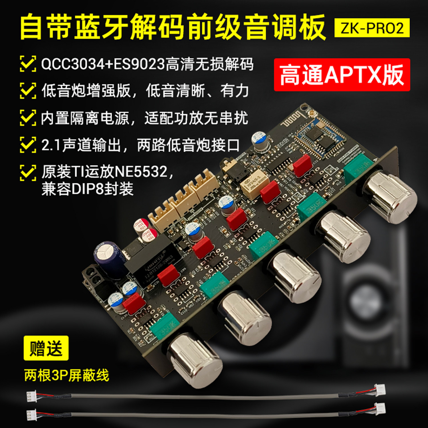 ZK-PRO2 тональная плата предусилителя Fever, 2,1-канальный сабвуфер, декодирование Qualcomm Bluetooth QCC3034 + ES9023