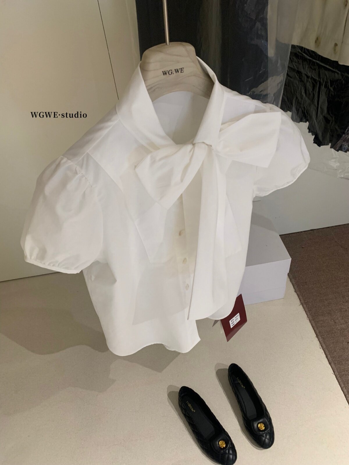 Летняя белая дизайнерская рубашка с бантиком, французский стиль, короткий рукав, тренд сезона