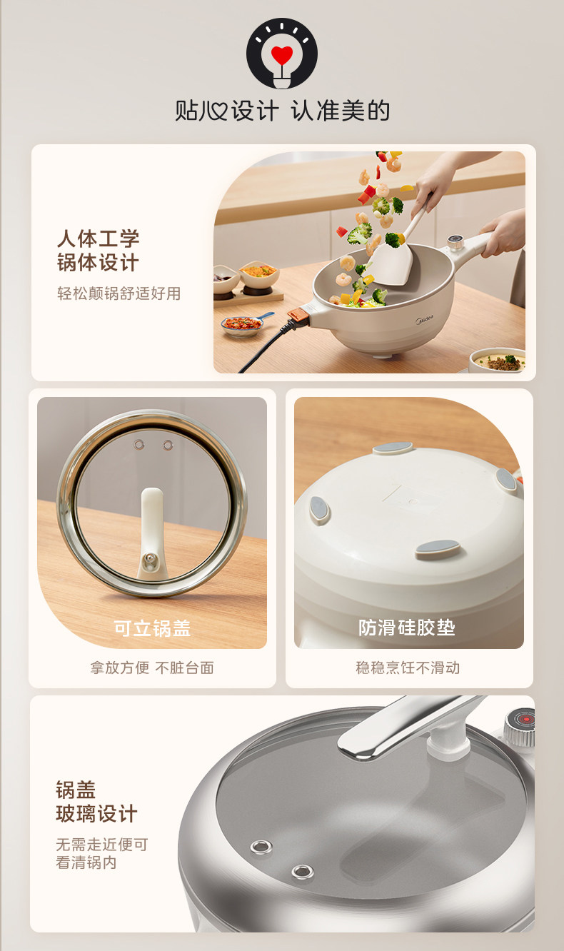 Электрический вок Midea, титановый, керамический, бытовой, универсальный, с антипригарным покрытием, для жарки и приготовления пищи, многофункциональная кастрюля двойного назначения, новая модель 2026 года