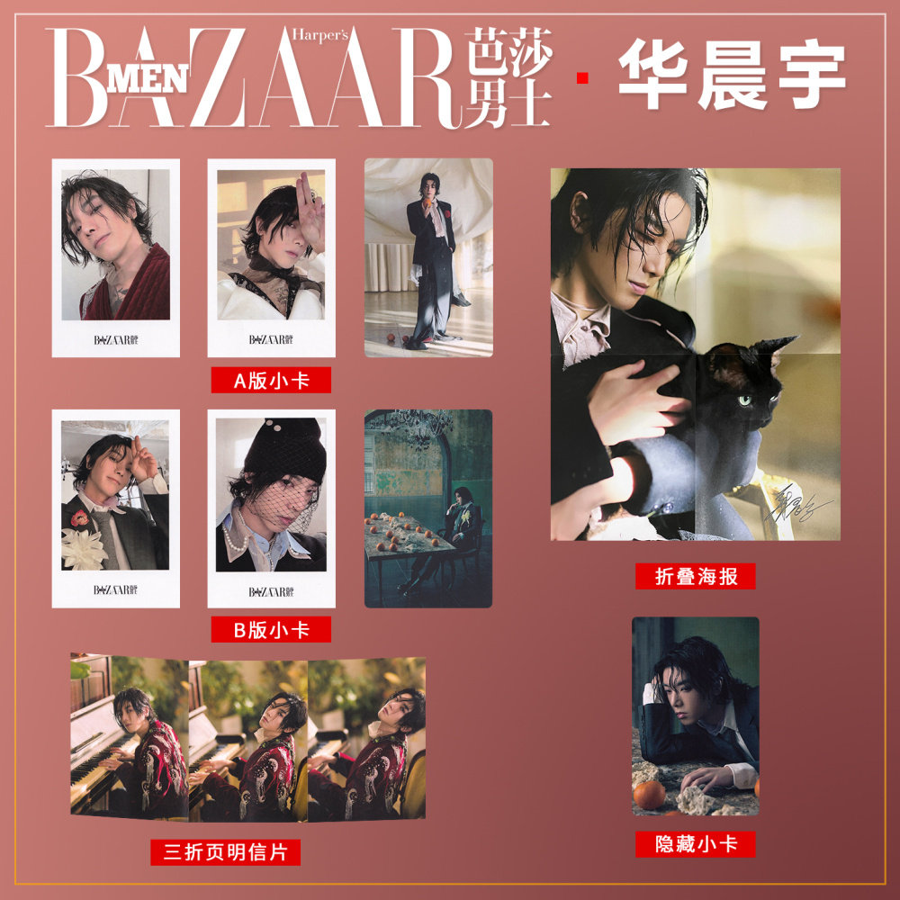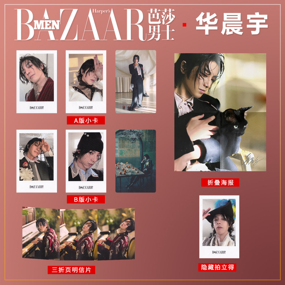 | Характеристики продукта: | Официальный подарочный набор Hua Chenyu Harper’s Bazaar Men (на фото без журнала), Официальная версия C Hua Chenyu для мужчин Harper's Bazaar в подарок (включая полароид со скрытым селфи, как на фото, без журнала), Официальная версия C Harper's Bazaar для мужчин Hua Chenyu в подарок (включая скрытую художественную карту, как показано на рисунке, без журнала), Harper's Bazaar Hua Chenyu 2 официальных поляроида версии A + 1 официальная фотокарточка версии B |