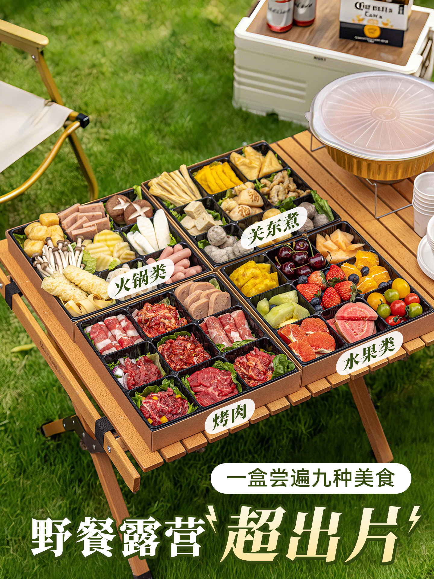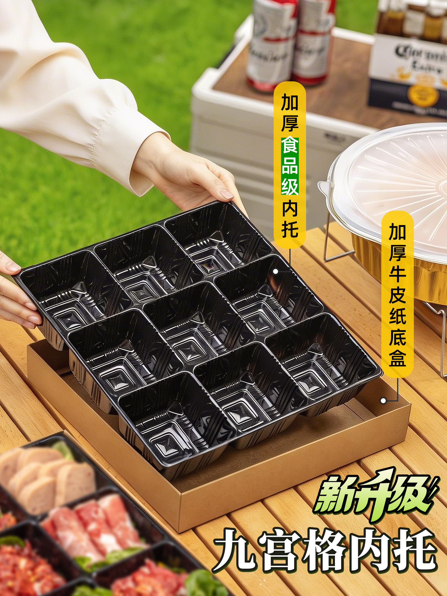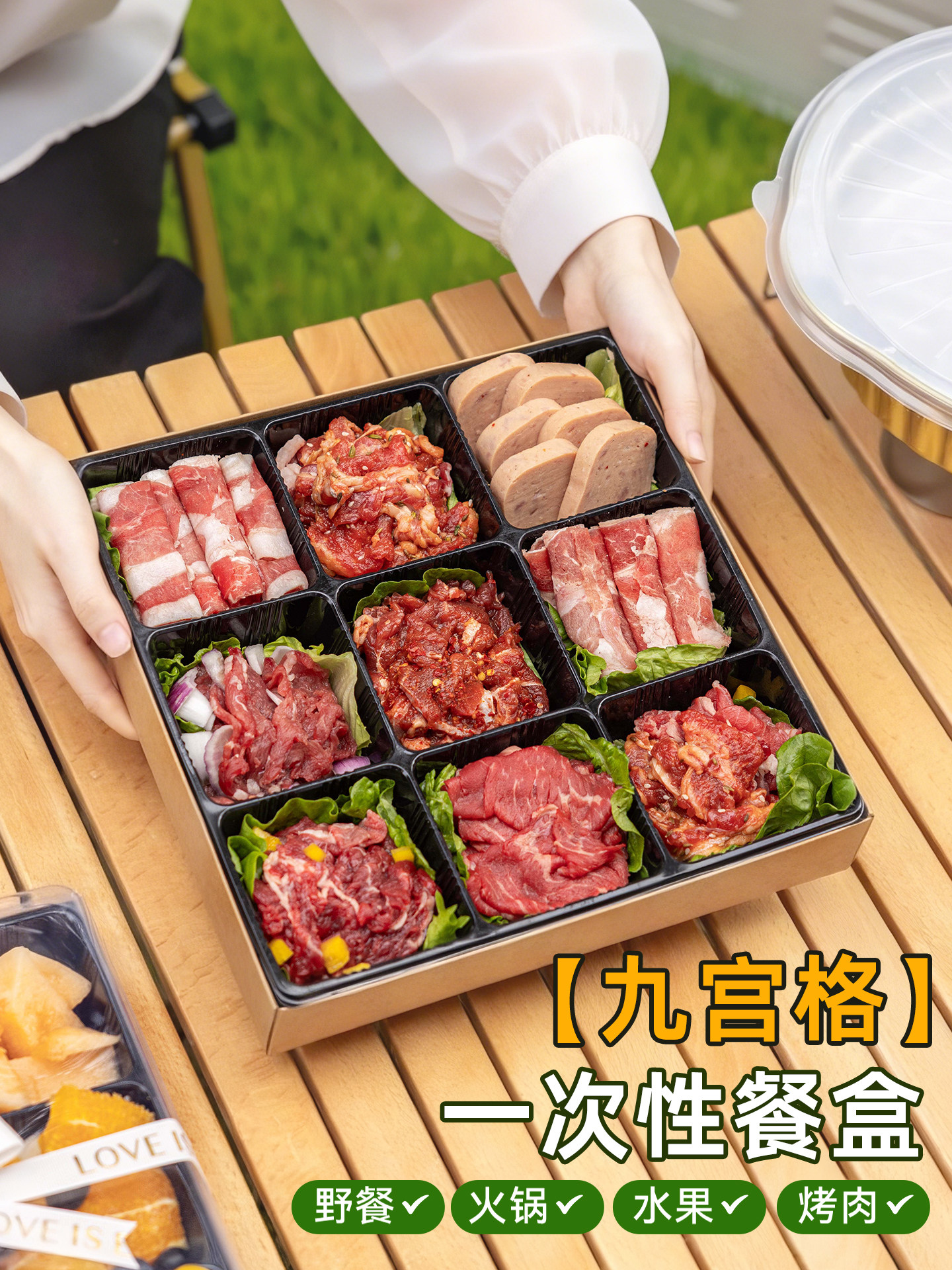 Ланч-бокс Jiugongge для пикника, горячий горшок, барбекю, мясо и фрукты, одноразовая упаковка, уличная весенняя прогулка, кемпинг, крафт-бумага