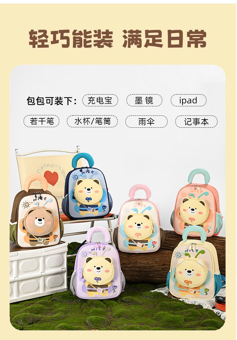 Мультяшный ранец для раннего возраста с нагрудной пряжкой, рюкзак, с медвежатами, подходит для подростков