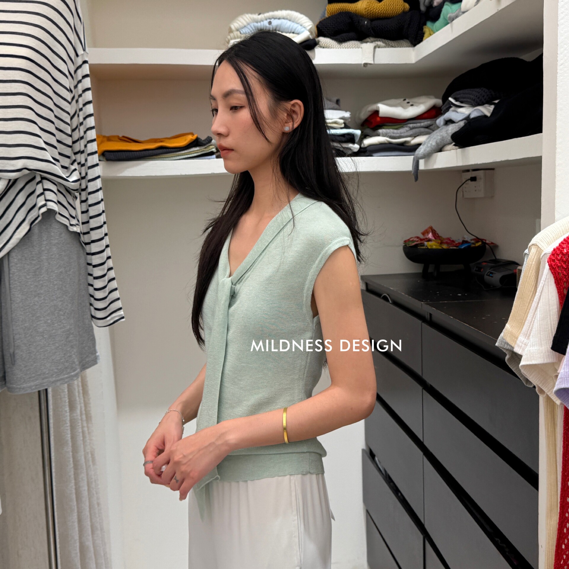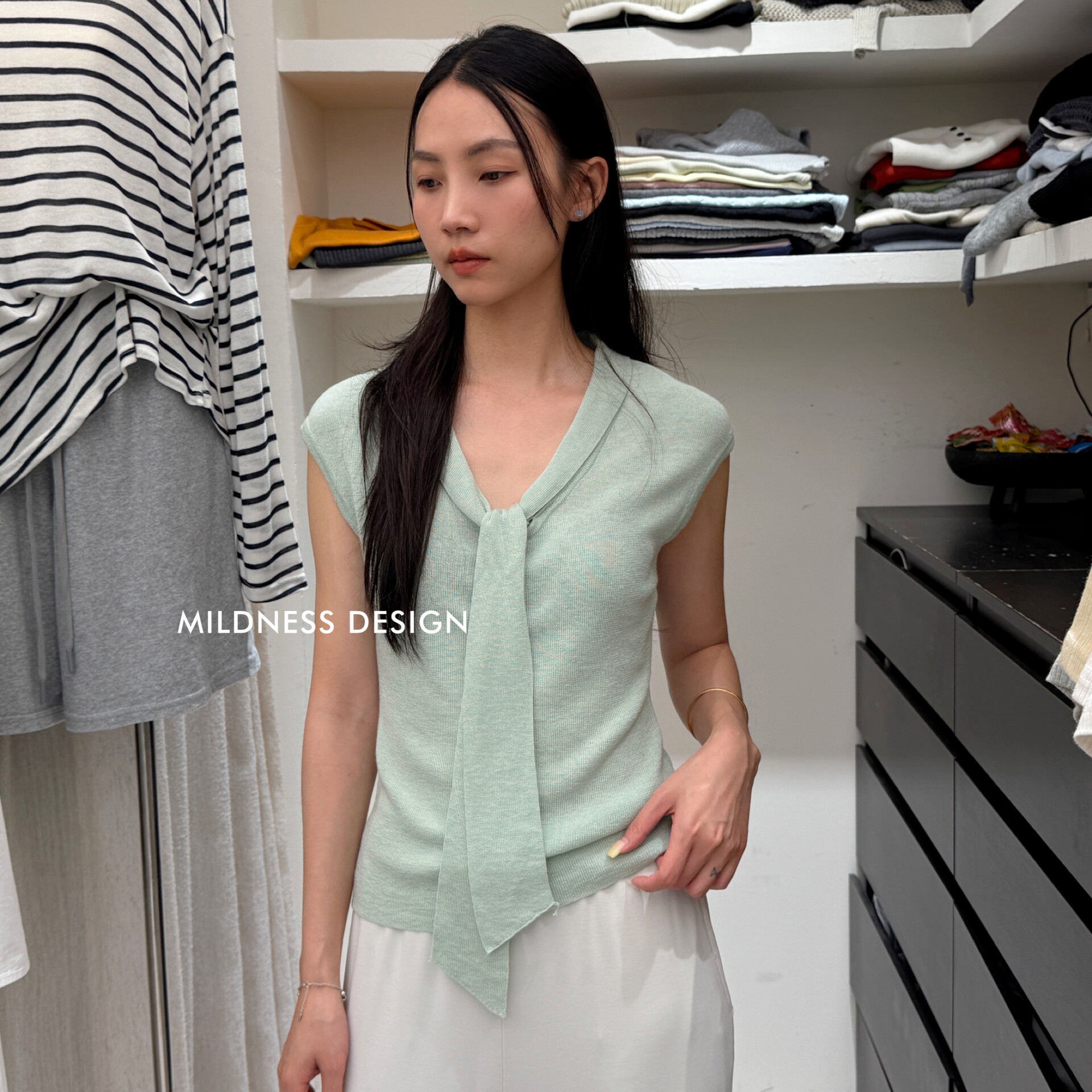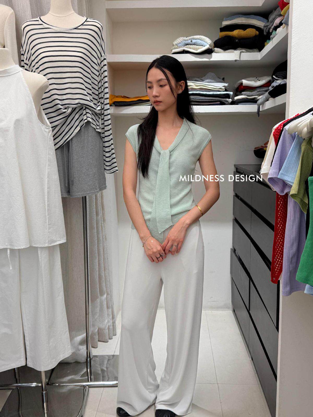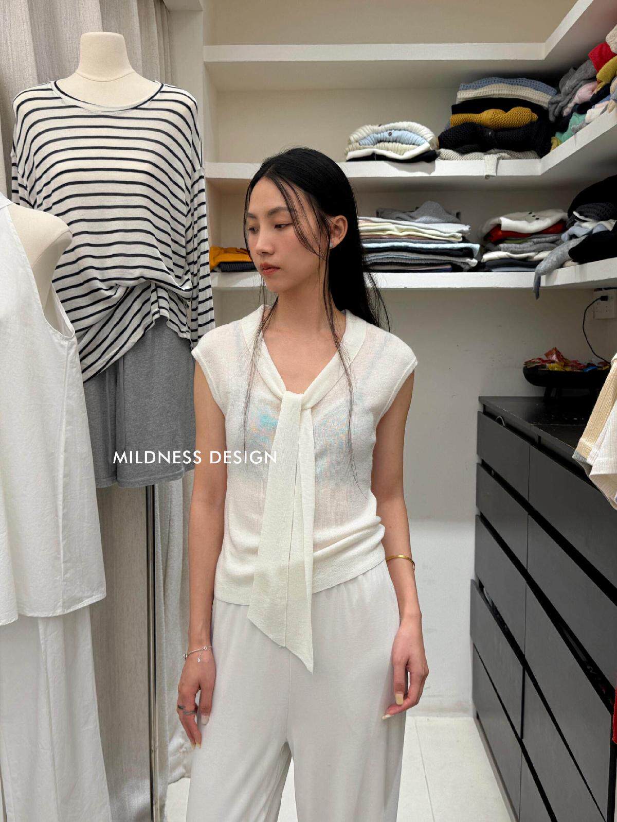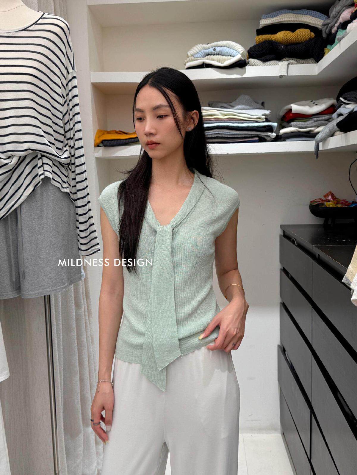 MILDNESS-весенний новый свитер MIDNESS из шелкового шелка на шнуровке, свитер 82170