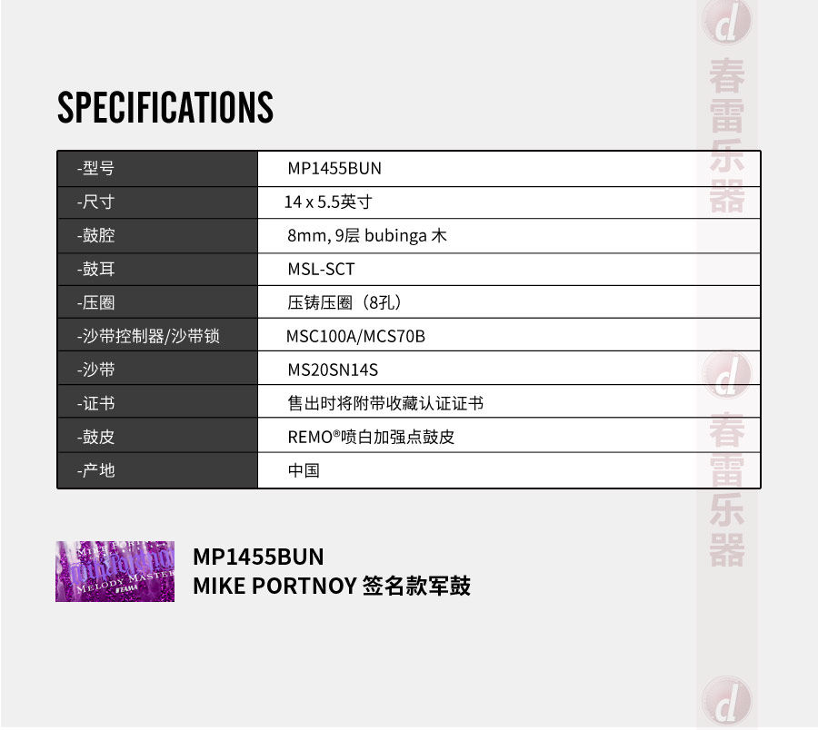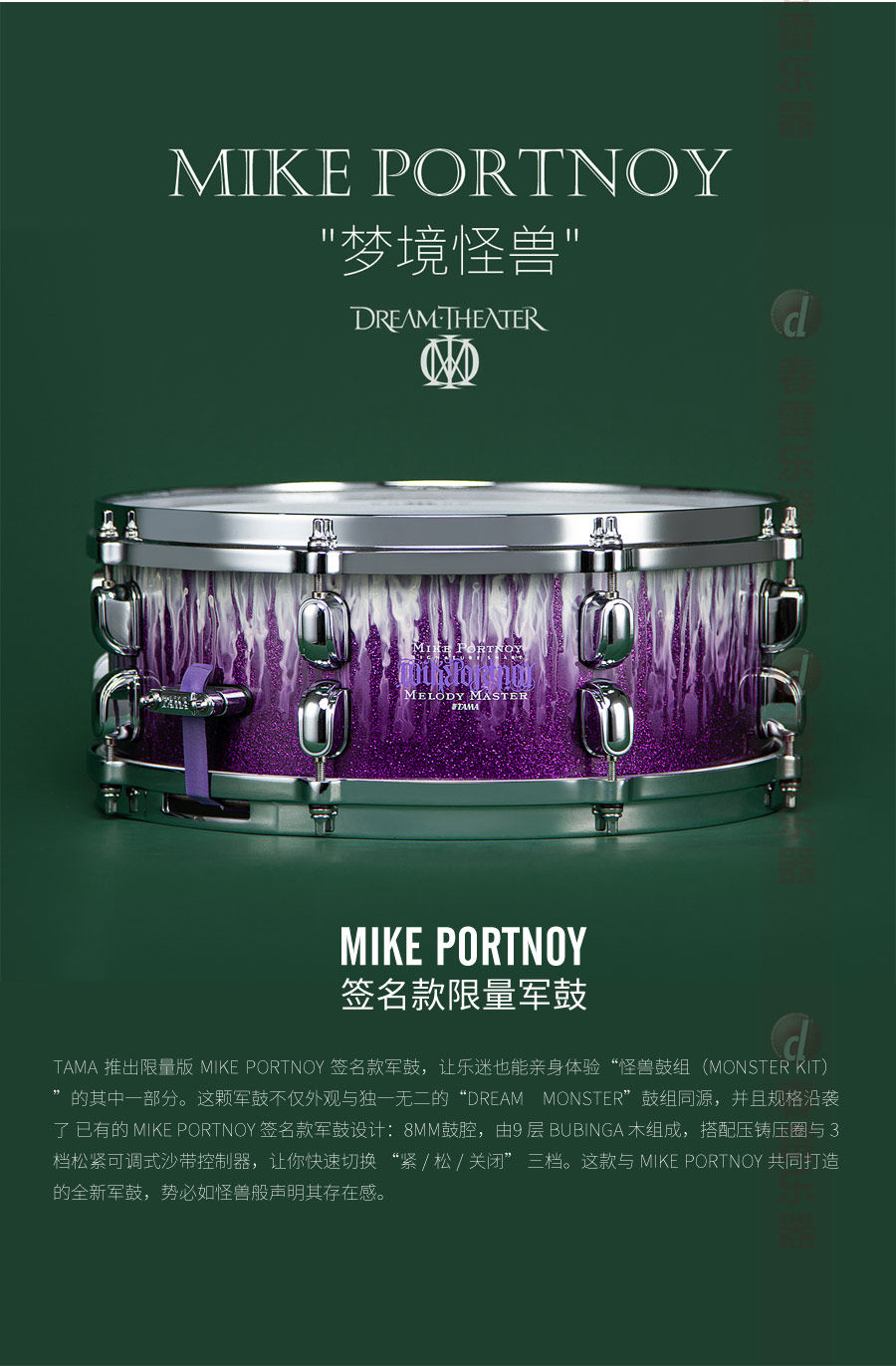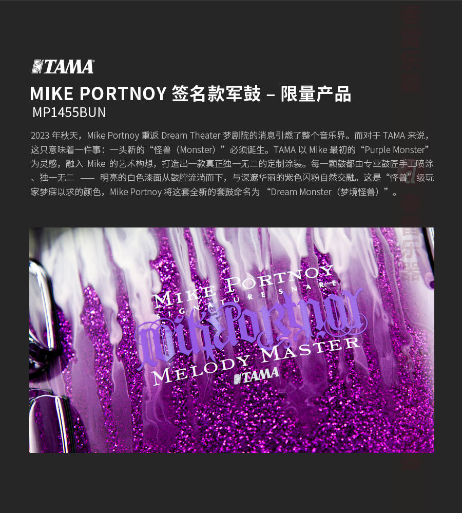 TAMA МАЙК ПОРТНОЙ Фирменный малый барабан Dream Theater 14x5,5 дюймов MP1455BUN