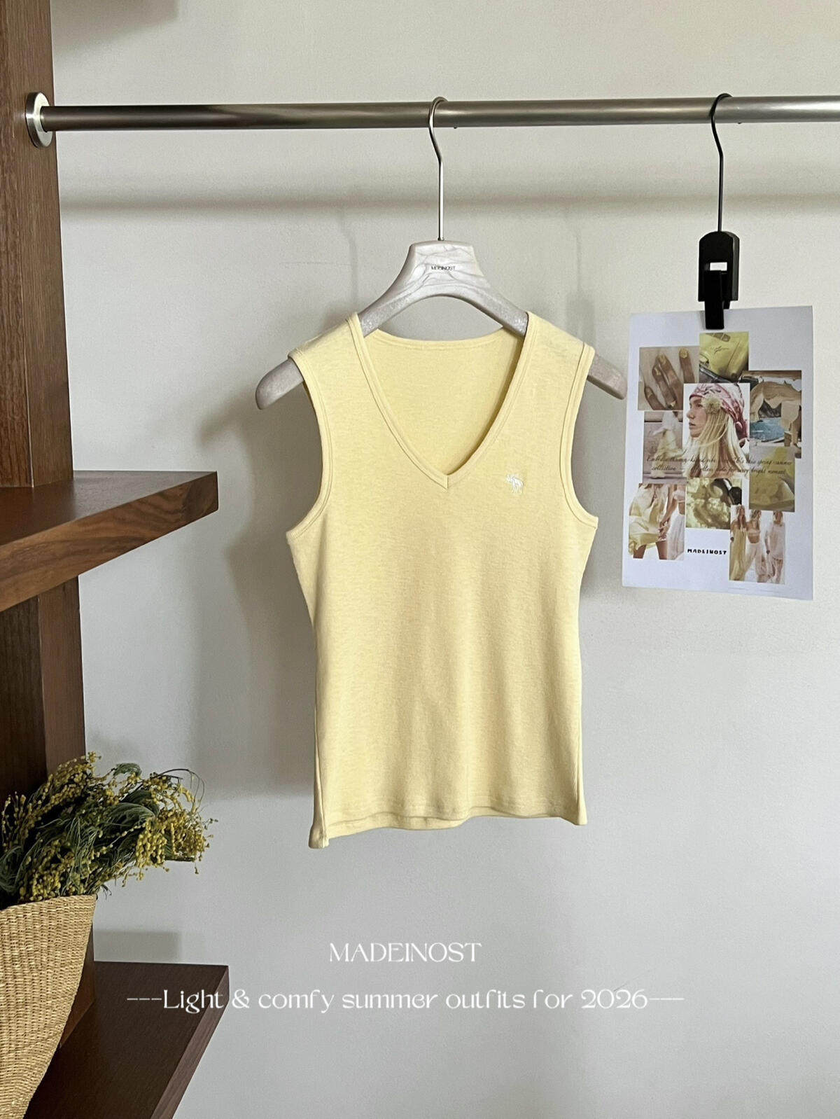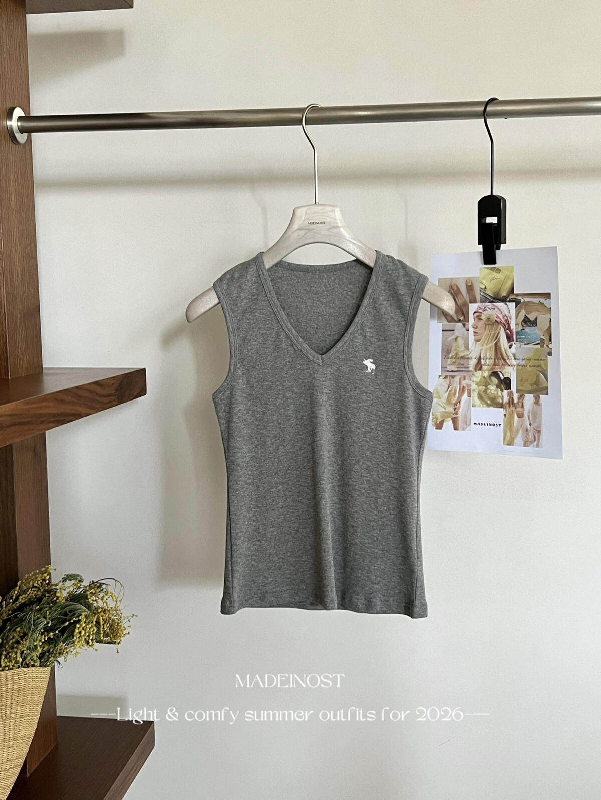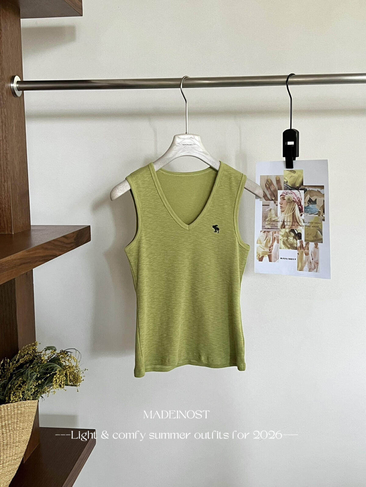 MADEINOST-Минималистичный жилет с V-образным вырезом из хлопка и льна в стиле старых денег 91259