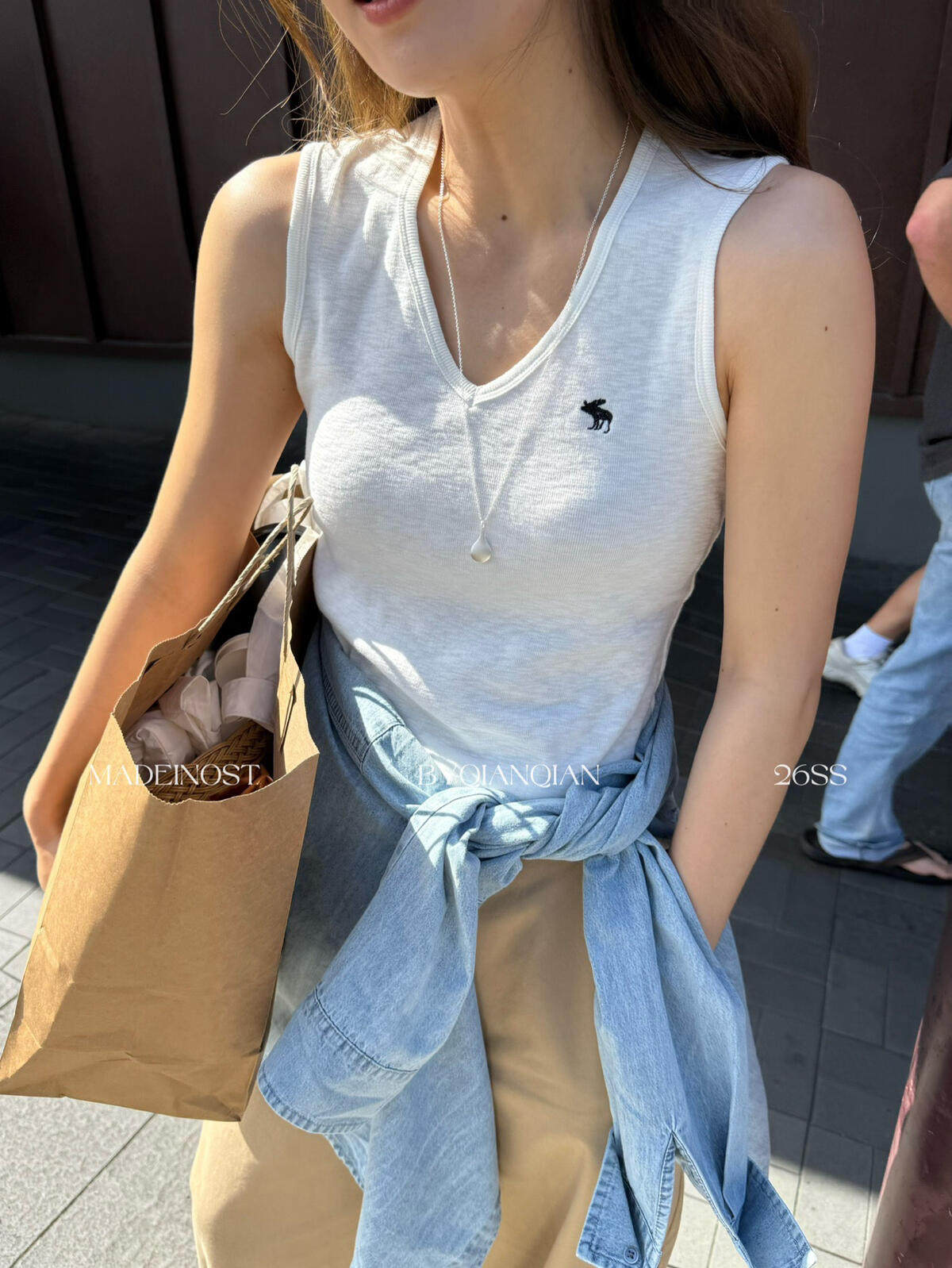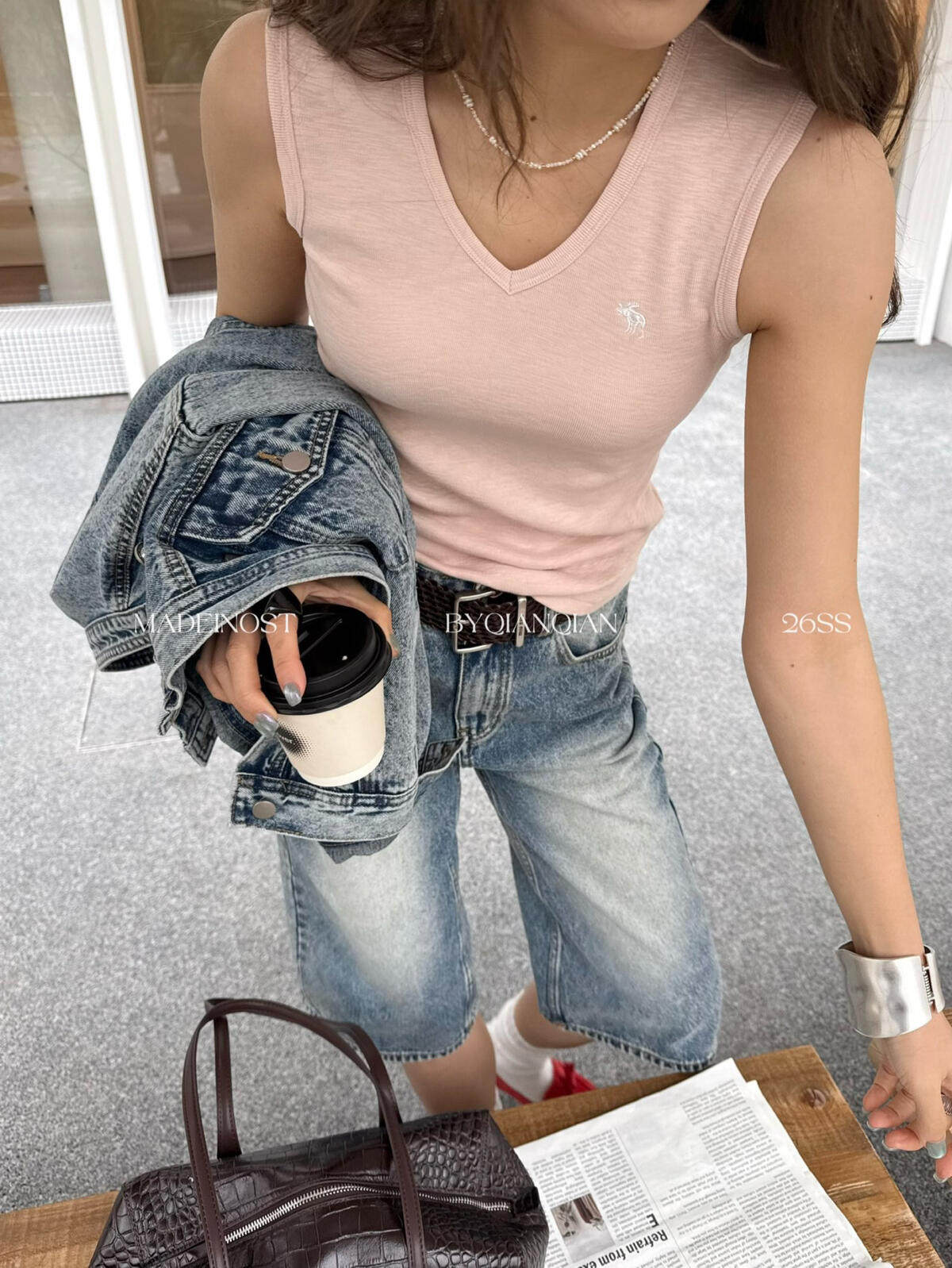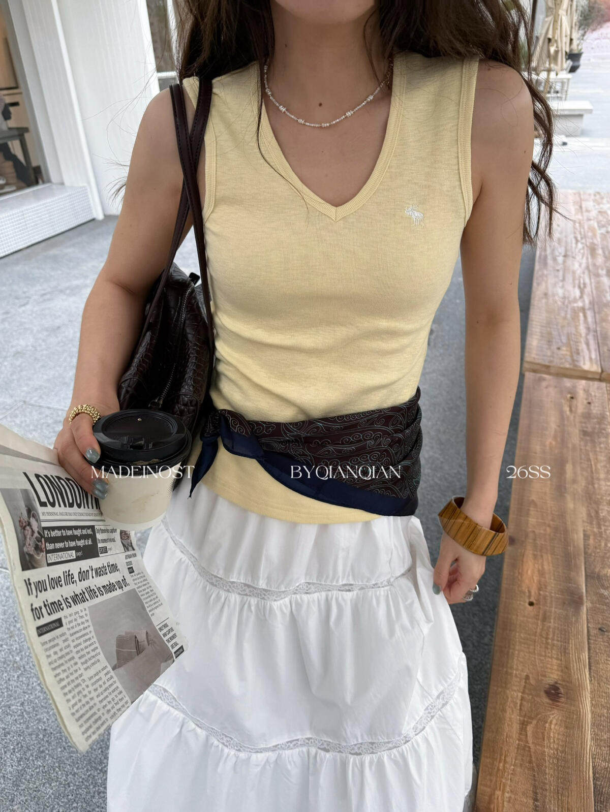 MADEINOST-Минималистичный жилет с V-образным вырезом из хлопка и льна в стиле старых денег 91259