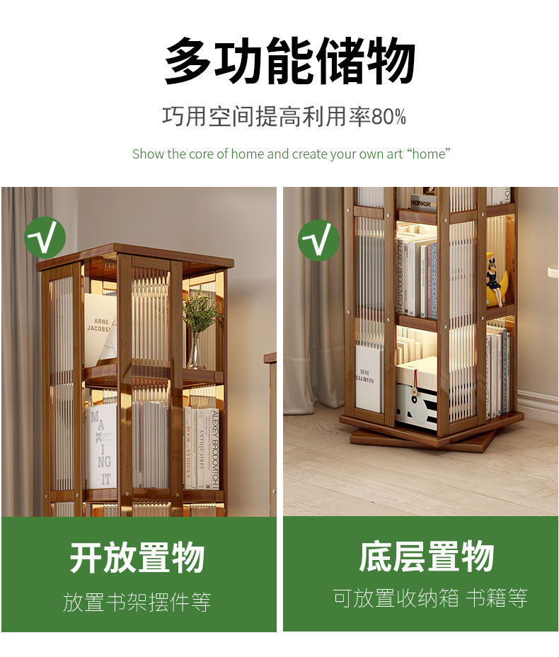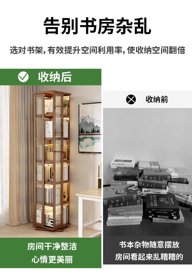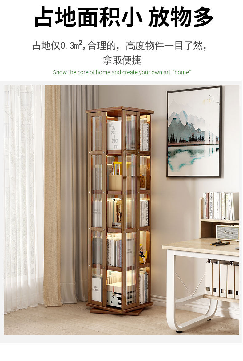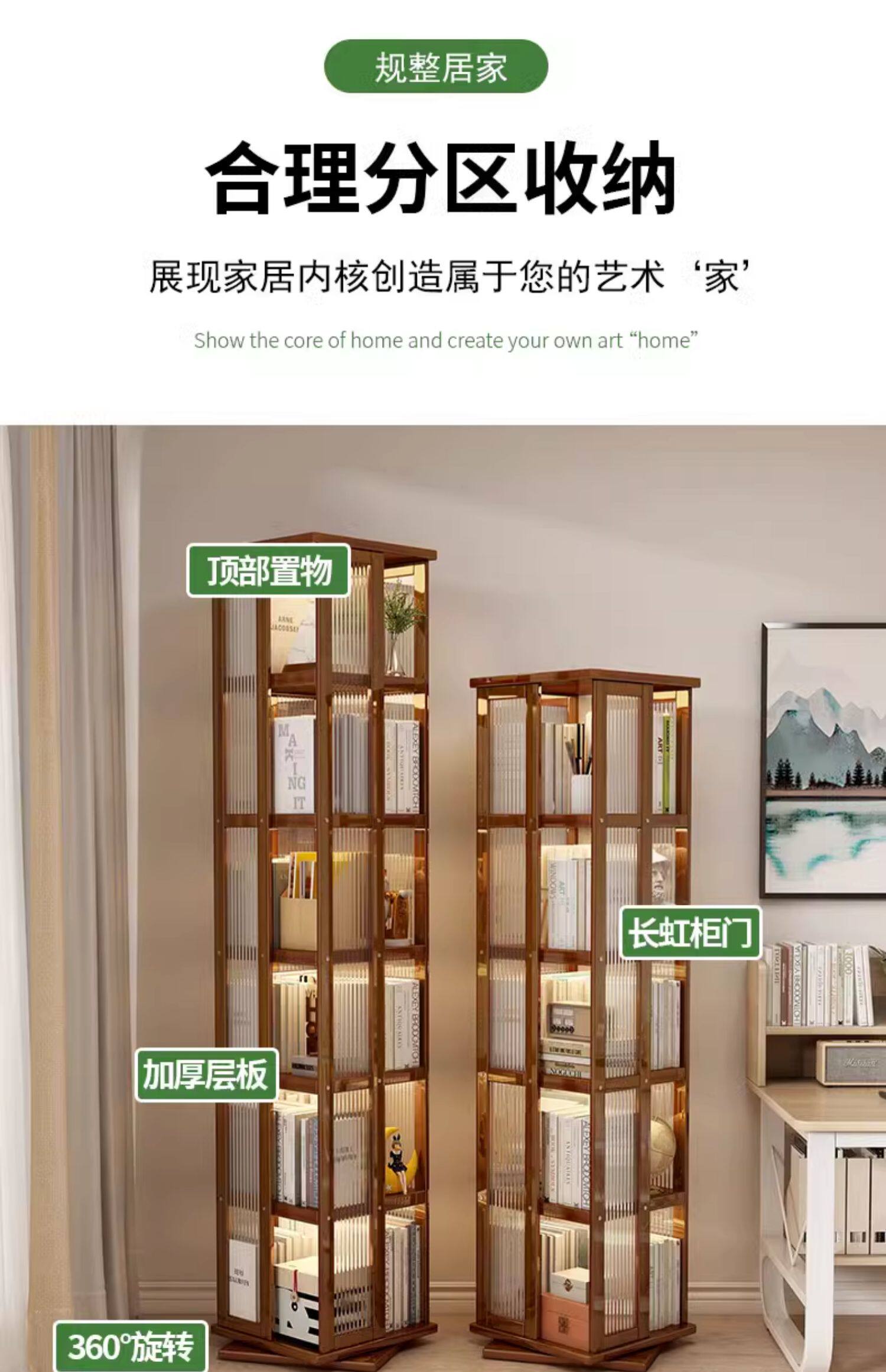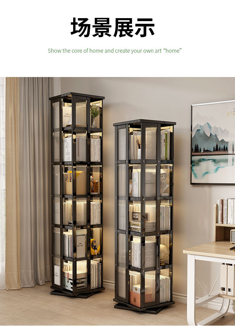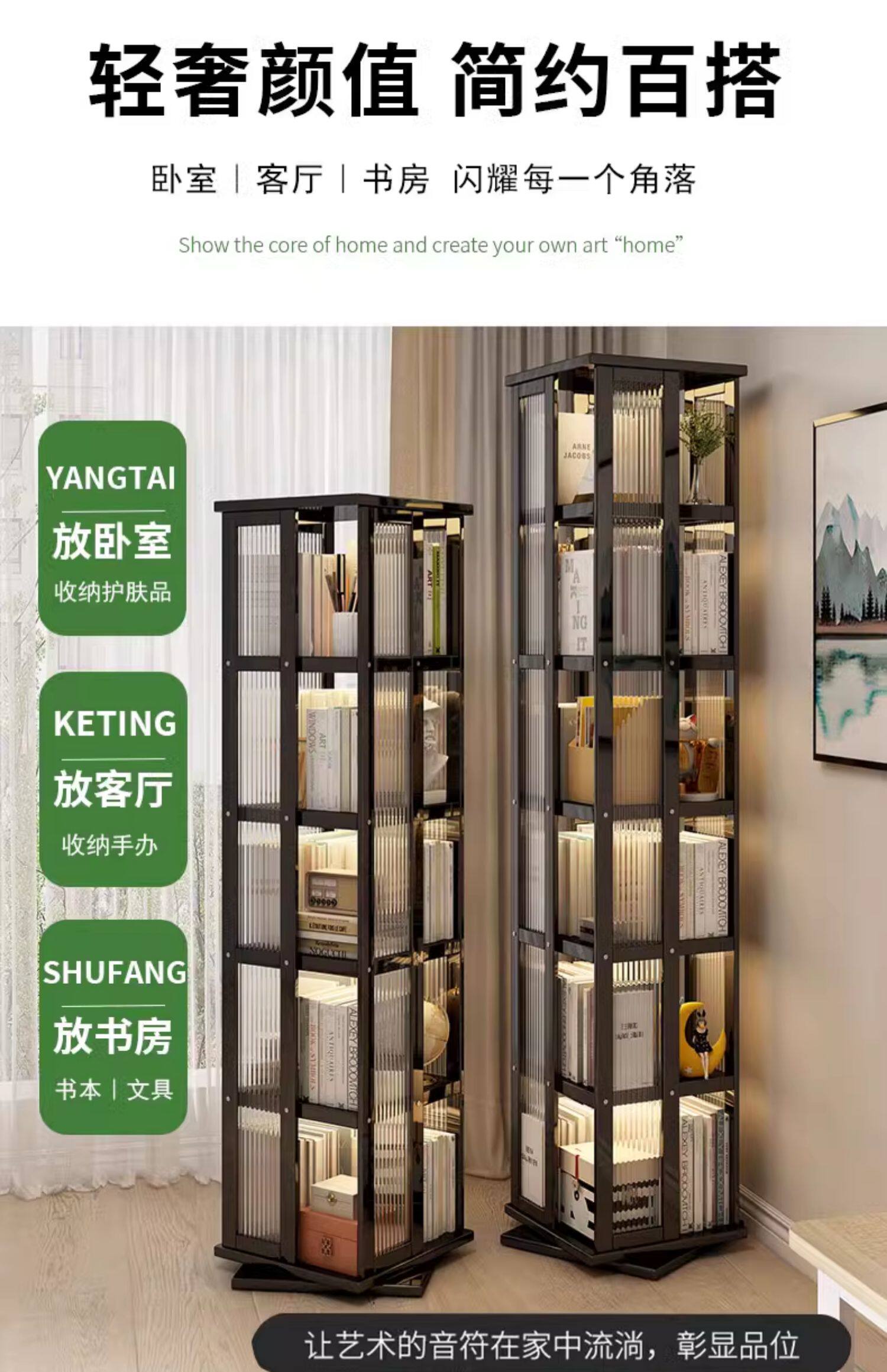 艾森耐 Бытовая вращающаяся книжная полка, напольная многофункциональная стойка для хранения, современная простая многослойная книжная полка для гостиной