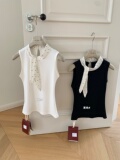 Летняя милая майка топ с бантиком без рукавов, французский стиль, изысканный стиль