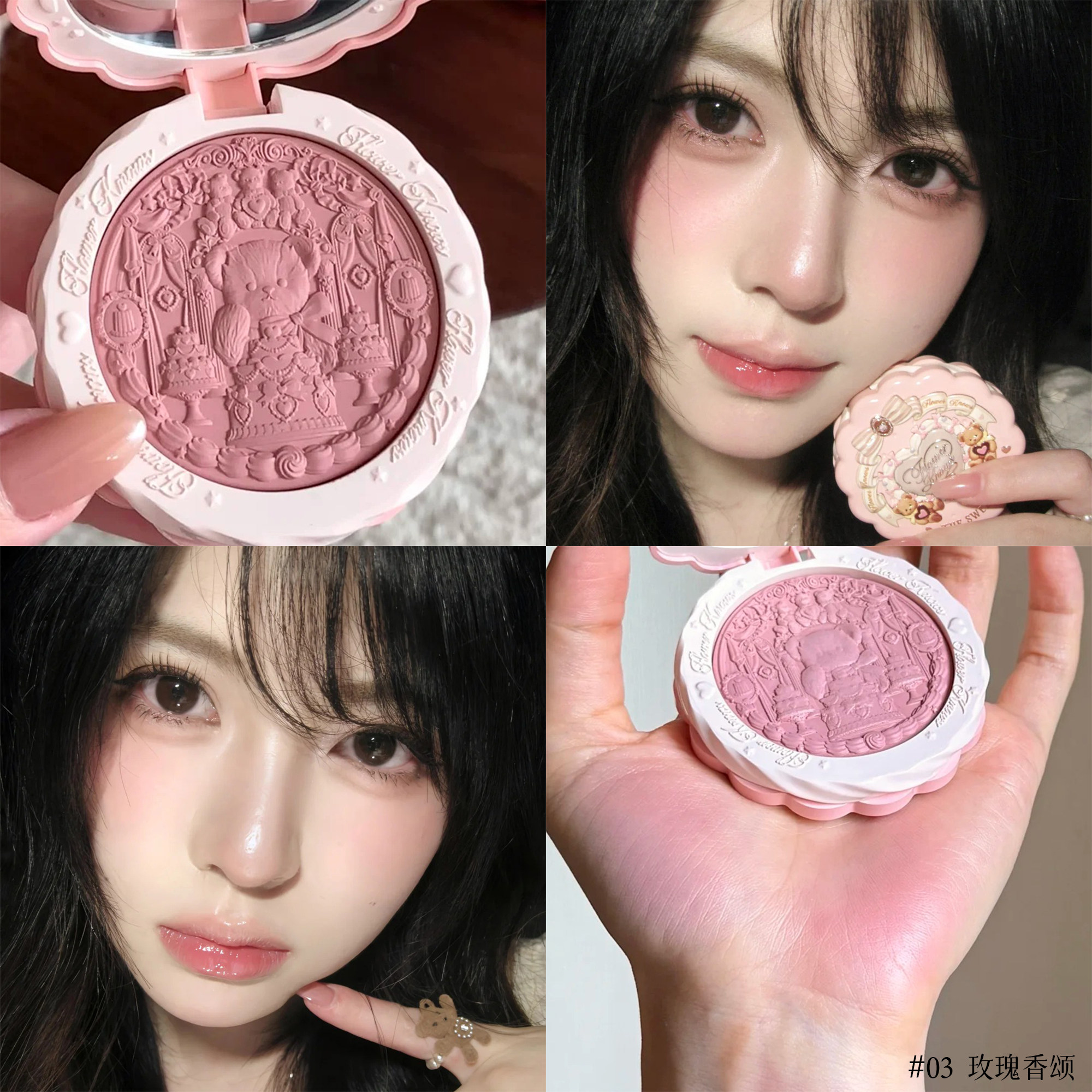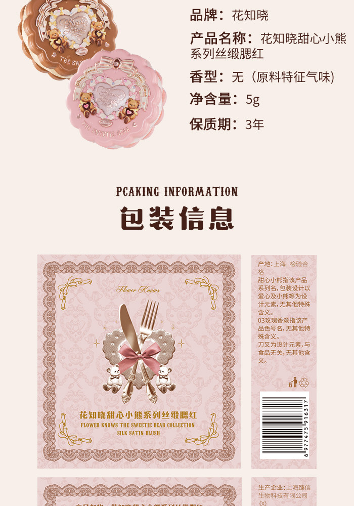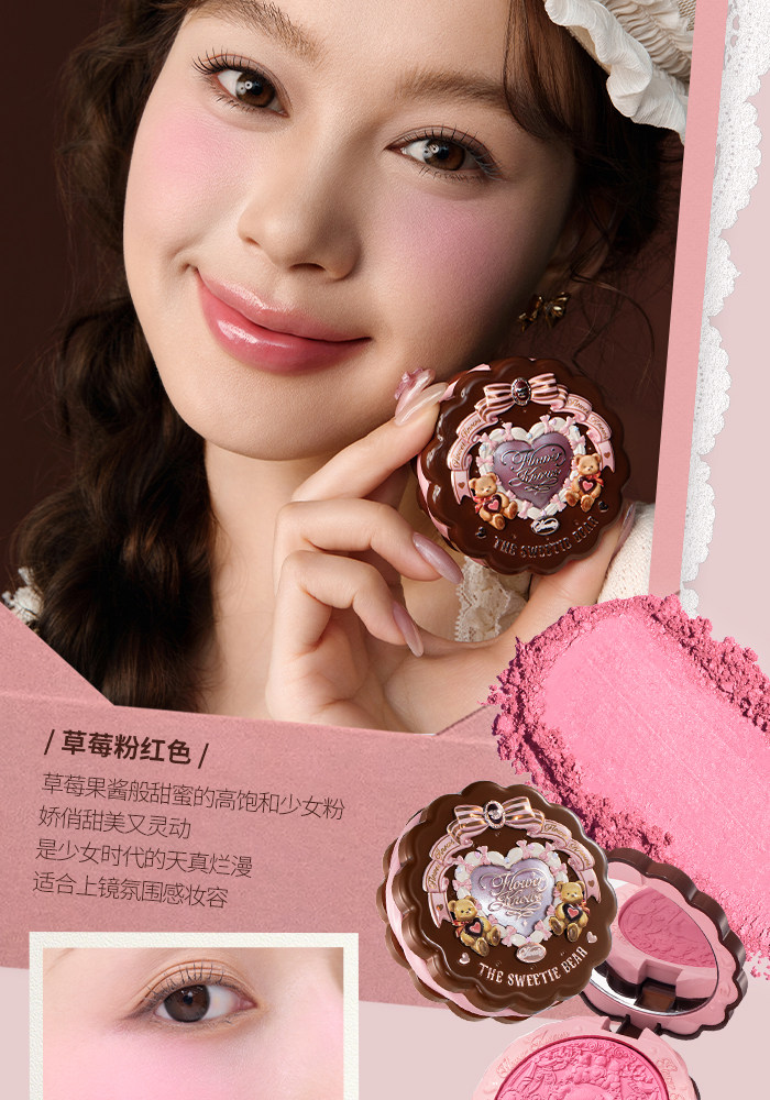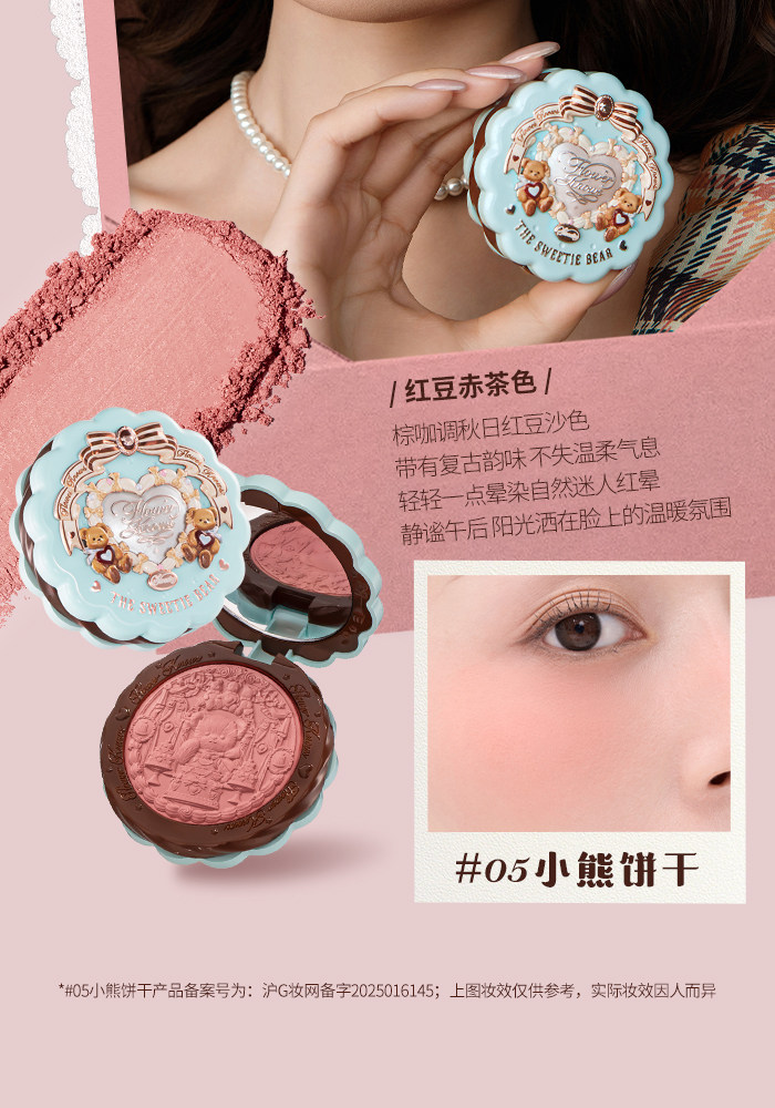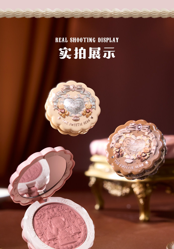 Супер нежный японский блеск!Румяна из шелкового атласа с тиснением Flower Knows Sweetheart Bear Мягкий свет, прозрачный цвет