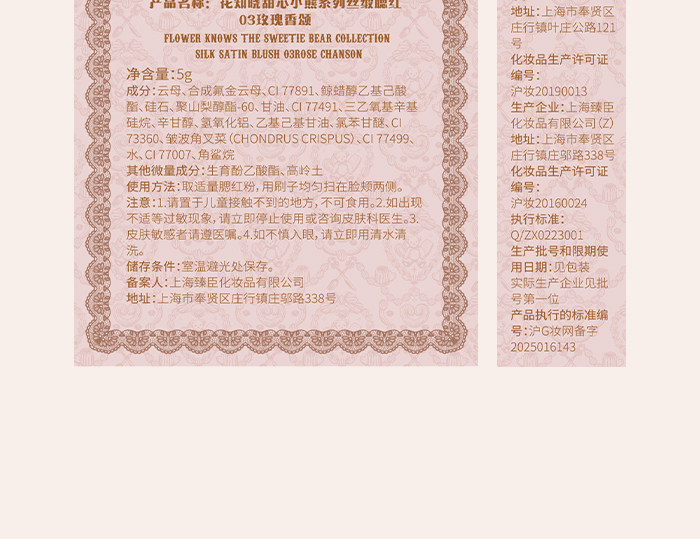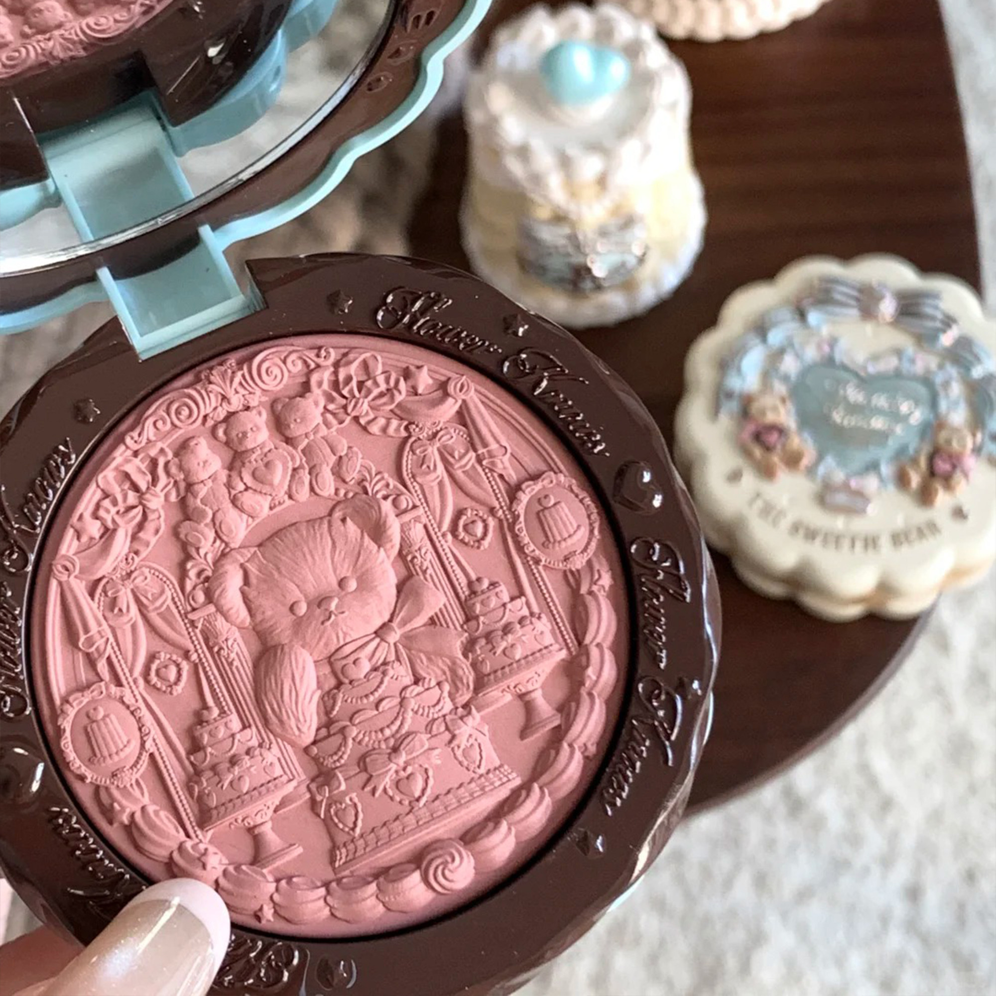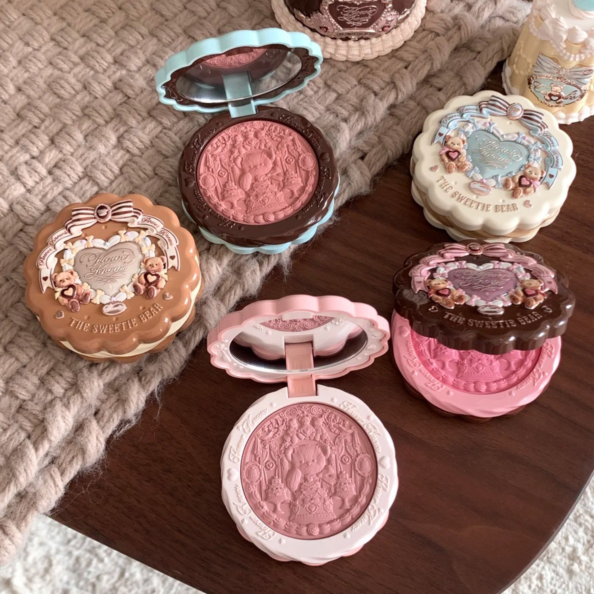Супер нежный японский блеск!Румяна из шелкового атласа с тиснением Flower Knows Sweetheart Bear Мягкий свет, прозрачный цвет