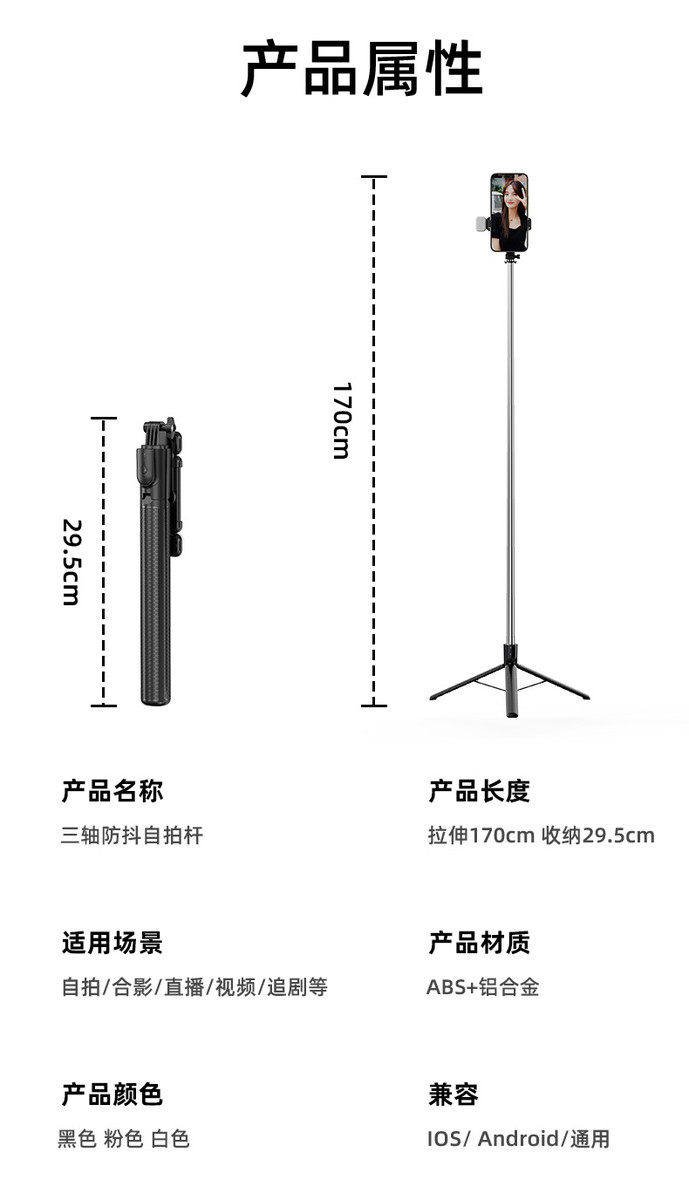 Палка для селфи для мобильного телефона, напольный штатив, универсальный портативный портативный селфи-артефакт, кронштейн для камеры для съемки мобильного телефона, универсальный Bluetooth-пульт дистанционного управления, оборудование для видеосъемки, видеоблог, анти-тряска