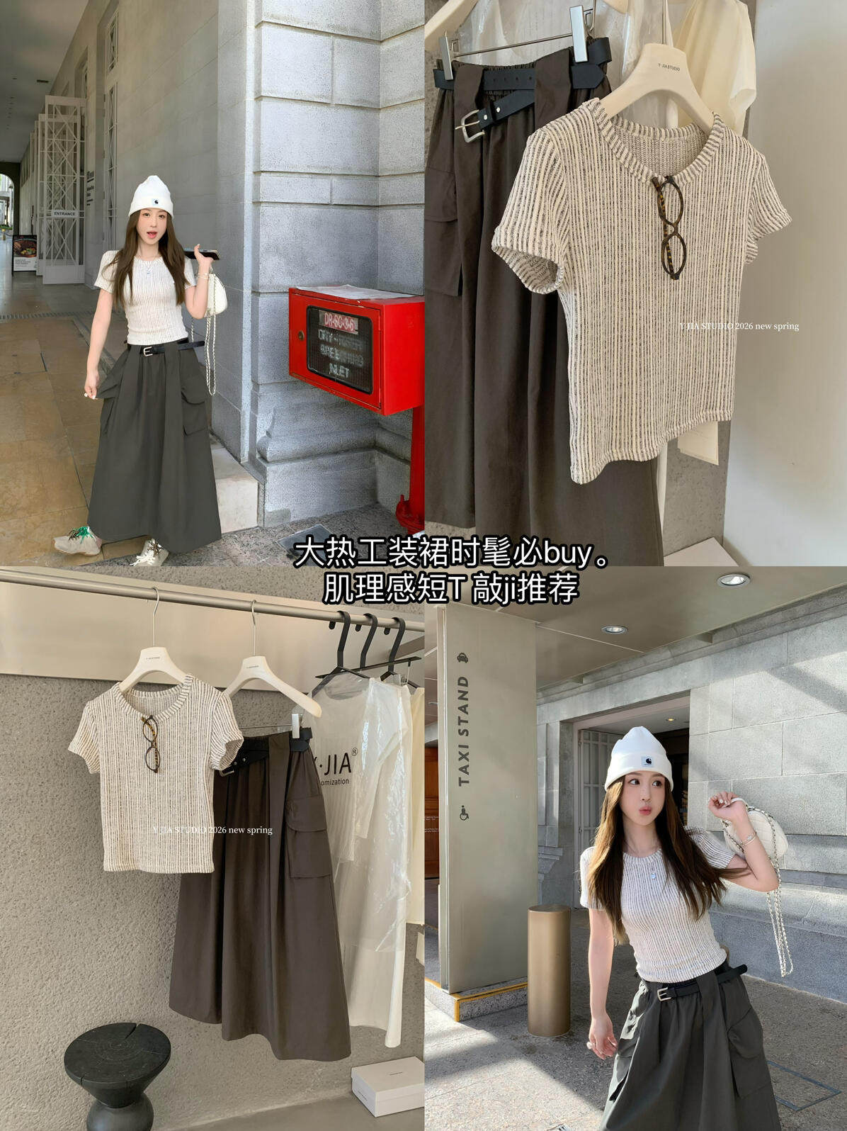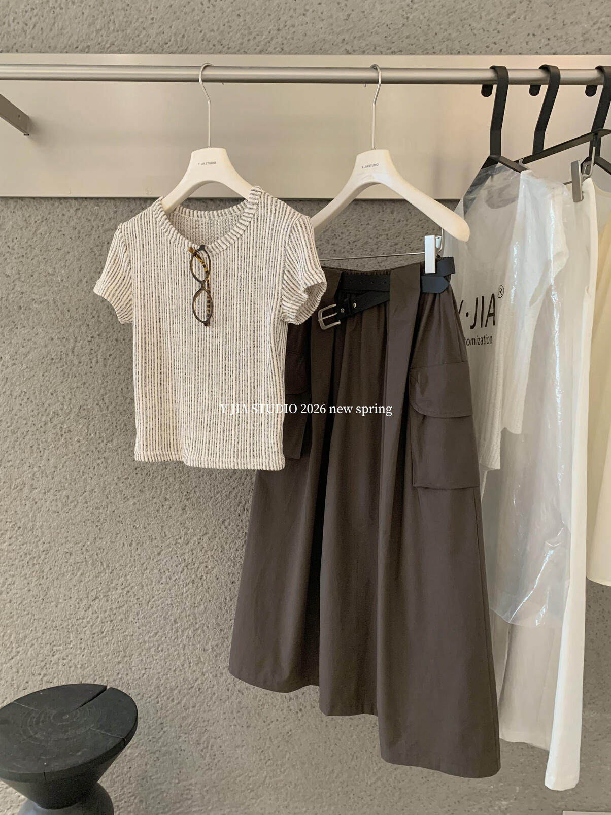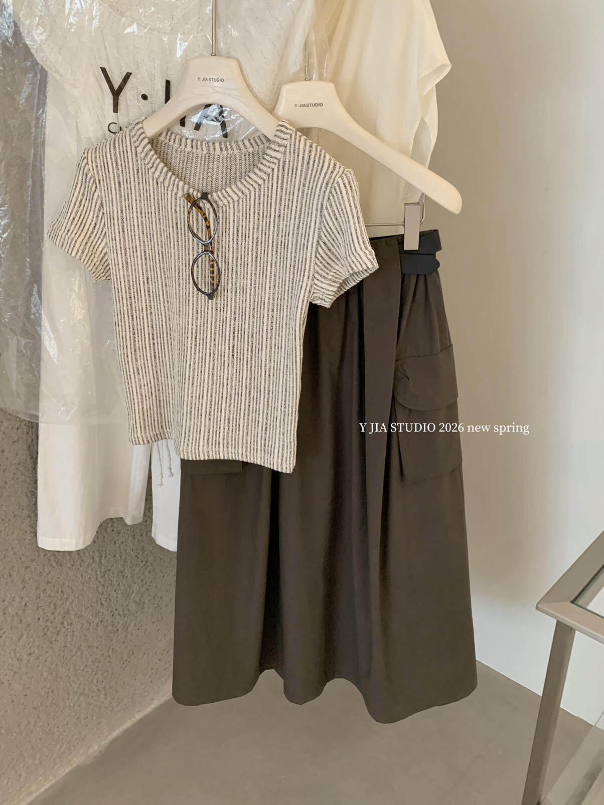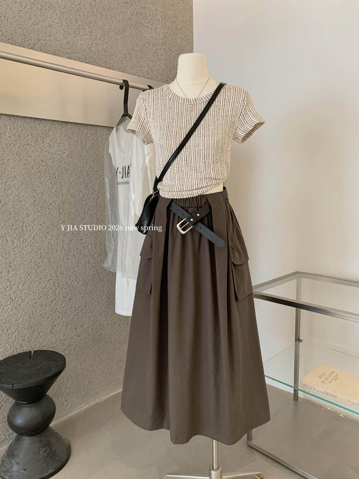 Y.JIA Yijia-облегающая футболка + костюм с рабочей юбкой с карманом и эластичной резинкой на талии (с поясом) Y26-5576